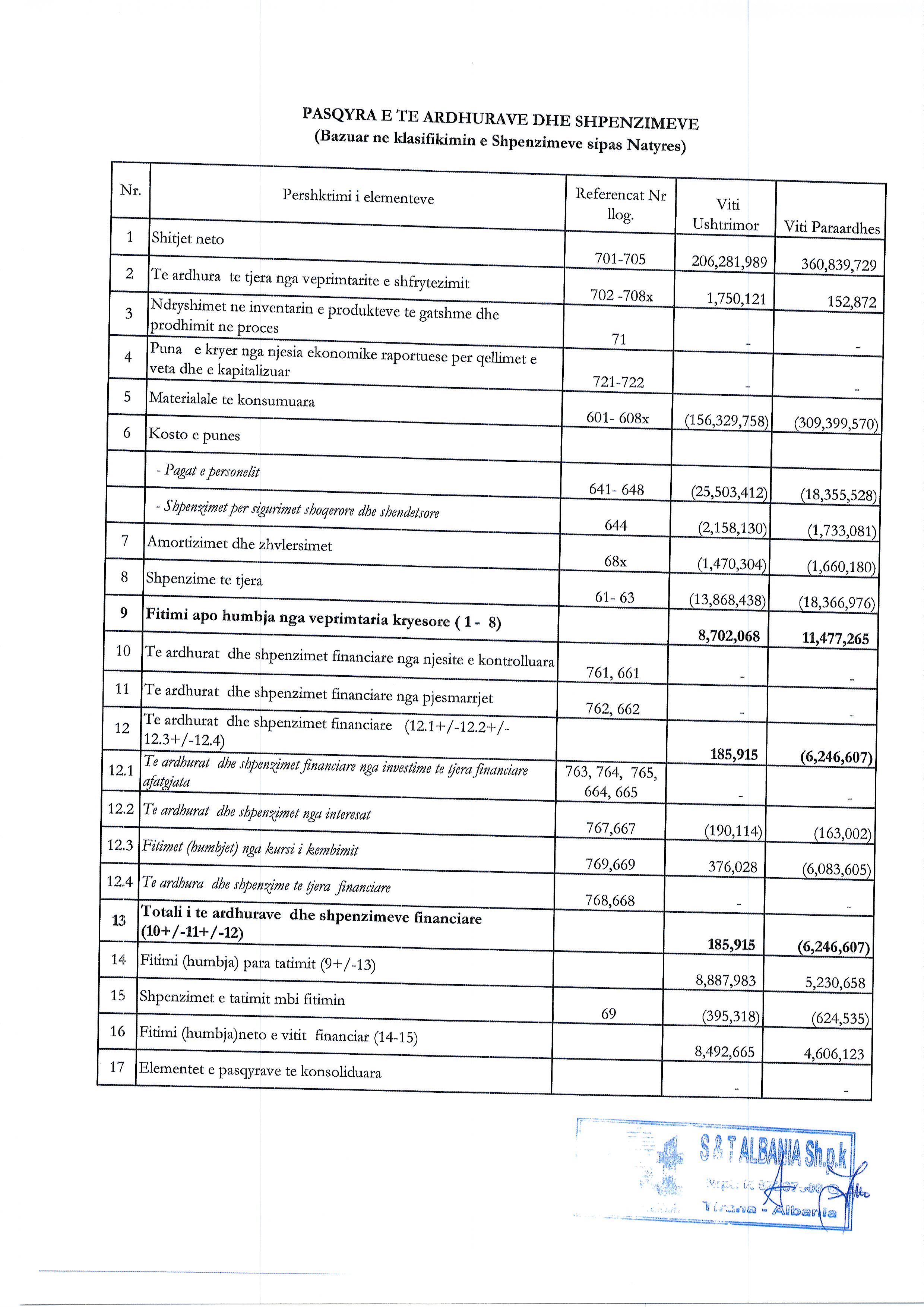 Xhiro Vjetore(Lekë) 2023:1 017 352 828,00 Xhiro Vjetore(Lekë) 2022:1 134 817 118,00 Xhiro Vjetore(Lekë) 2021:626 101 927,00 Xhiro Vjetore(Lekë) 2020:635 203 065,00 Xhiro Vjetore(Lekë) 2019:595 569 467,00 Xhiro Vjetore(Lekë) 2018:488 985 185,00 Xhiro Vjetore(Lekë) 2017:470 612 193,00 Xhiro Vjetore(Lekë) 2016:447 663 223,00 Xhiro Vjetore(Lekë) 2015:475 353 969,00 Xhiro Vjetore(Lekë) 2014: 361 040 240,00 Xhiro Vjetore(Lekë) 2013: 208 032 110,00 |