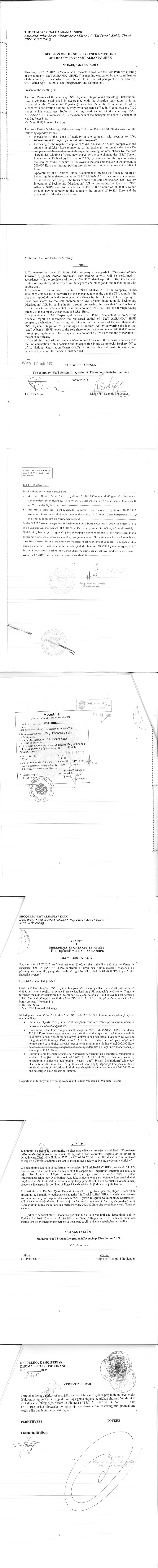 → Ekstrakt historik i regjistrit tregtar 09.06.2022 → Akti i themelimit dhe statuti → Vendimi i ortakut te vetem per zmadhimin e kapitalit 17.07.2012 → Kontrate fuzioni date 06.11.2012 → Vendimi i ortakut te vetem per zmadhimin e kapitalit 08.06.2021 → EKSTRAKT HISTORIK I REGJISTRIT TË PRONARIT PËRFITUES, 09.03.2021 → Ekstrakti Historik i Regjistrit Tregtar date 15.05.2023 → Kerkese per Ndryshim Emri te Shoqerise Meme date 13.07.2022 → Marreveshje Tr/. Kuotash date 29.12.2022 → Ekstrakti Historik i Regjistrit te Pronareve Perfitues date 15.05.2023 → Ekstrakt Historik i Regjistrit Tregtar date 16.02.2024 → Marrëveshje Shit-Blerje Kuotash datë 20.10.2023 → Statuti i Shoqërisë së Huaj - VINCI Energies CEE ICT GmbH - nga Regjistri Elektronik i Gjykatës së Rrethit Ludwigshafen am Rhein datë 01.10.2023 → Ekstrakt Historik i Regjistrit te Pronareve Perfitues date 16.02.2024 → Ekstrakt Historik i Regjistrit Tregtar date 09.12.2024 |
