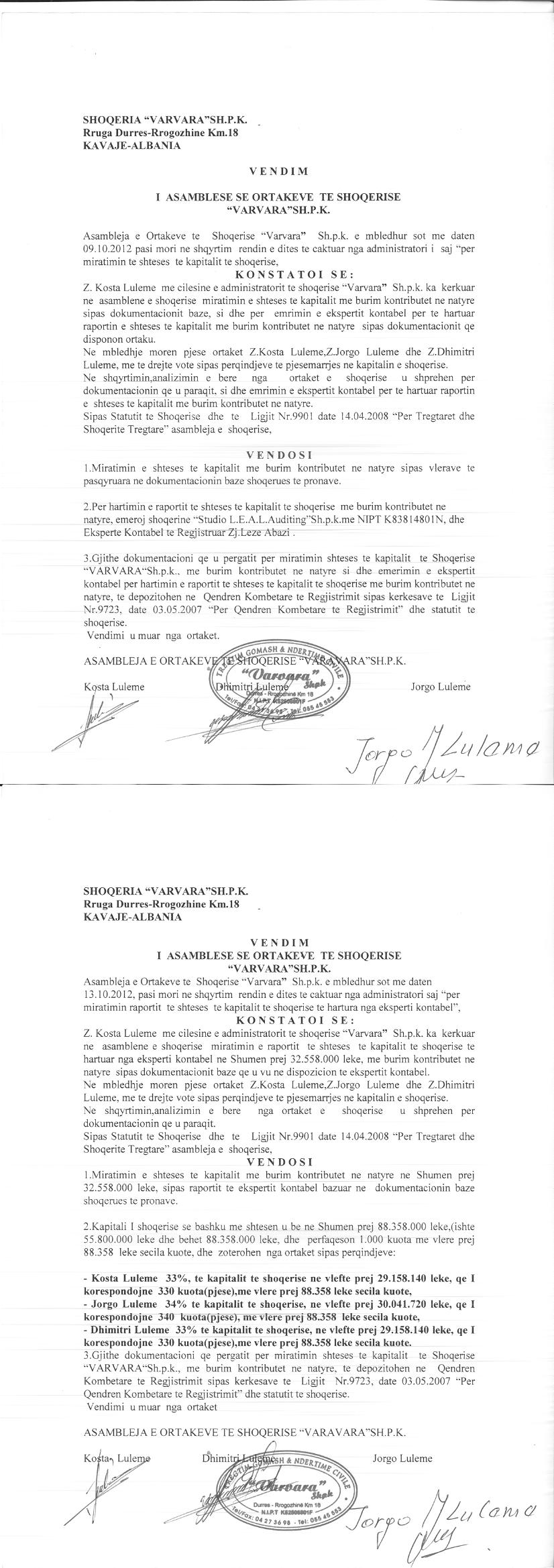 → Ektrakt historik i regjistrit tregtar 07.02.2022 → Vendimi i asamblese per zmadhimin e kapitalit 01.06.2011 → Vendimi i asamblese per zmadhimin e kapitalit 13.10.2012 |