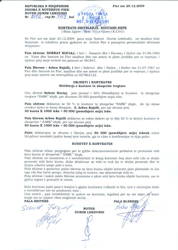 → Ekstrakt historik i regjistrit tregtar 02.03.2021 → Akti i themelimit dhe statuti → Kontrate shitblerje kuotash 25.12.2009 → Ekstrakt Historik i Regjistrit Tregtar date 13.06.2025 |