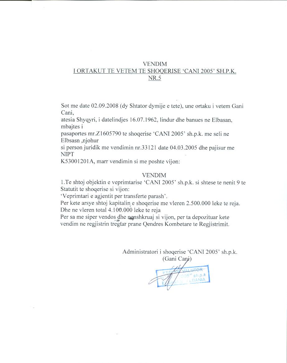→ Ekstrakti Historik i Regjistrit Tregtar date 23.11.2021 → Statuti i Shoqerise → Vendim i ortakut te vetëm per rritjen e kapitalit date 02.09.2008 |