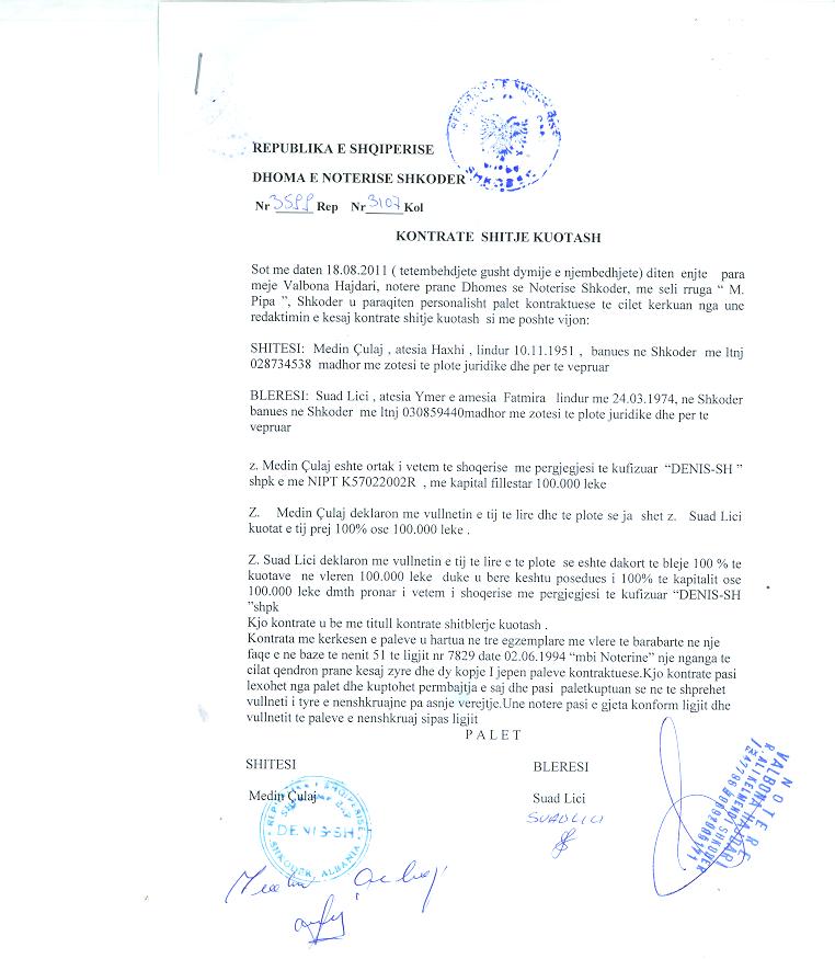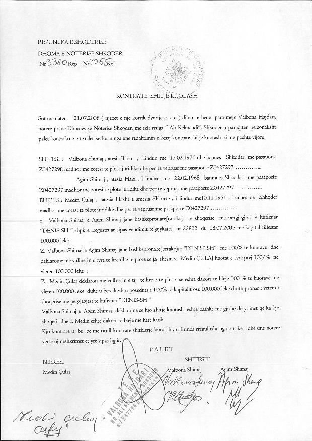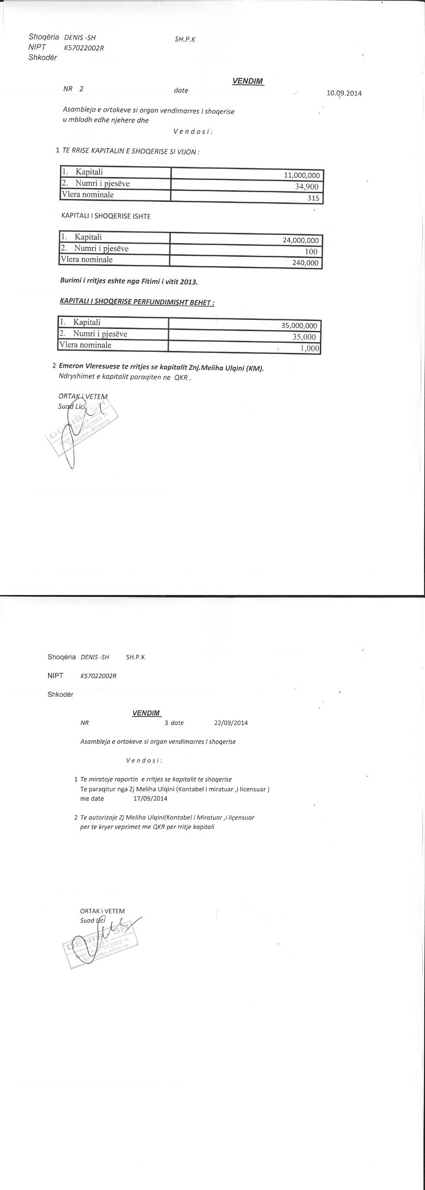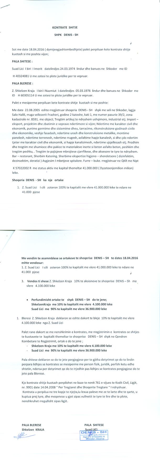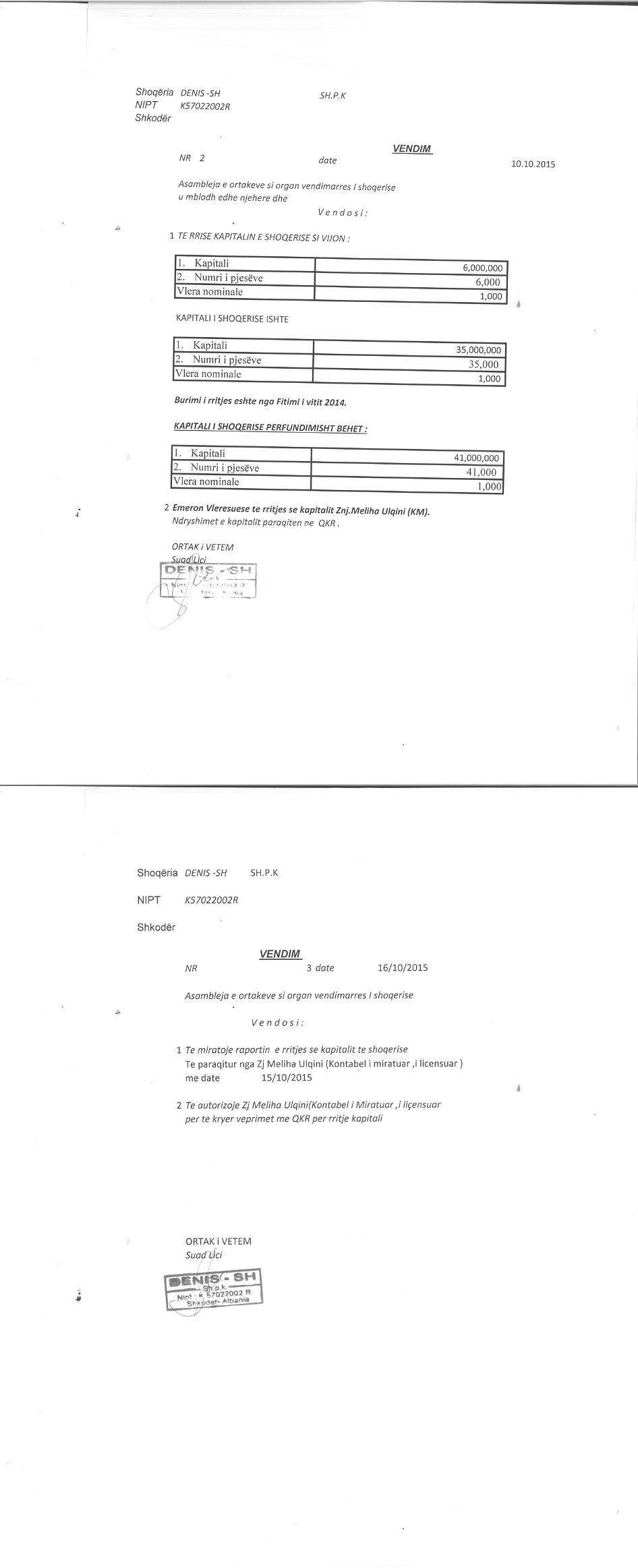 → Ekstrakti Historik i Regjistrit Tregtar date 21.12.2021 → Statusi fillestar i shoqerise → Statuti i Shoqerise → Kontrate e Shitjes se Kuotave date 21.07.2008 → Kontrate e Shitjes se Kuotave date 18.08.2011 → Vendim i Asamblese se Pergjithshme per rritjen e kapitalit date 27.11.2012 → Vendim i Asamblese se Pergjithshme per rritjen e kapitalit date 16.07.2013 → Vendim i Asamblese se Pergjithshme per rritjen e kapitalit date 10.09.2014 → Vendim i Asamblese se Pergjithshme per rritjen e kapitalit date 10.10.2015 → Kontrate e Shitjes se Kuotave date 18.04.2016 → Vendim i Asamblese se Pergjithshme per rritjen e kapitalit date 10.06.2016 → Kontrate e Shitjes se Kuotave date 25.05.2017 → Kontrate e Shitjes se Kuotave date 31.05.2017 → Kontrate e Shitjes se Kuotave date 07.06.2017 → Kontrate e Shitjes se Kuotave date 12.06.2017 → Kontrate e Shitjes se Kuotave date 20.06.2017 → Kontrate e Shitjes se Kuotave date 14.07.2017 → Kontrate e Shitjes se Kuotave date 22.07.2017 → Kontrate e Shitjes se Kuotave date 26.10.2017 → Kontrate e Shitjes se Kuotave date 05.07.2017 |