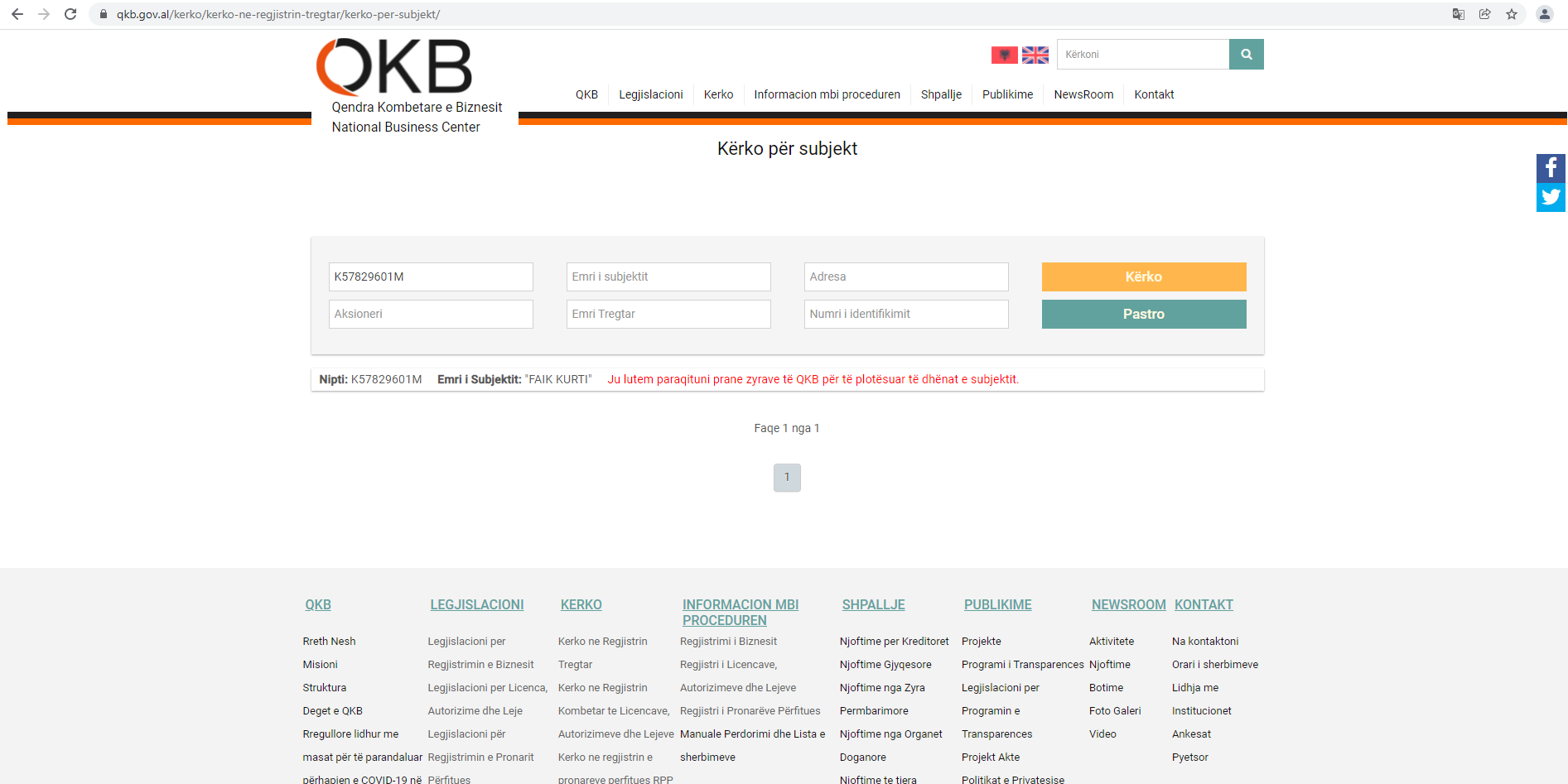 → Te dhenat per subjektin Faik Kurti ne QKB, date 14.01.2022 |