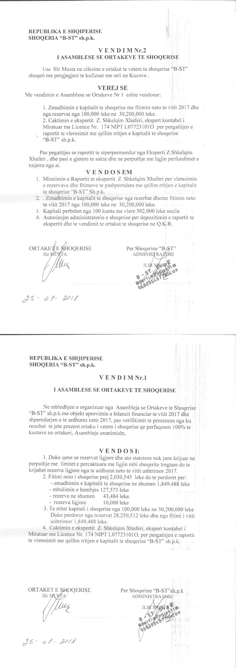 → Ekstrakt Historik i Regjistrit Tregtar date 05.10.2023 → Akt themelimi dhe Statuti i Shoqerise → Vendim i Asamblesë së Ortakëve, Zmadhim Kapitali datë 25.09.2018 → Ekstrakt Historik i Regjistrit Tregtar date 16.04.2024 → Të dhënat e Investimit, Financimet Nga IPARD - Aksesuar nga Agjencia për Zhvillim Bujqësor dhe Rural AZHBR datë 17.04.2024 |