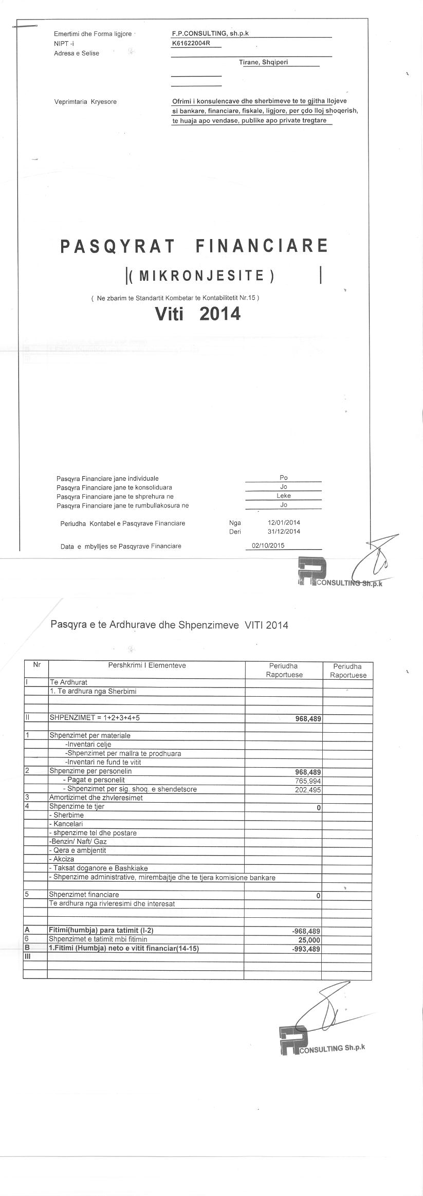 | Emërtime të tjera Tregtare: | "F.P.CONSULTING" |