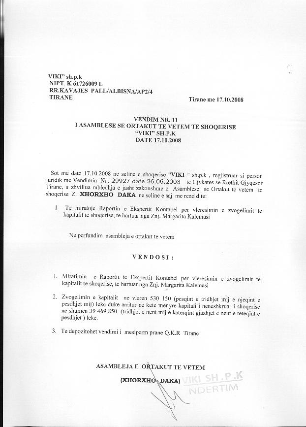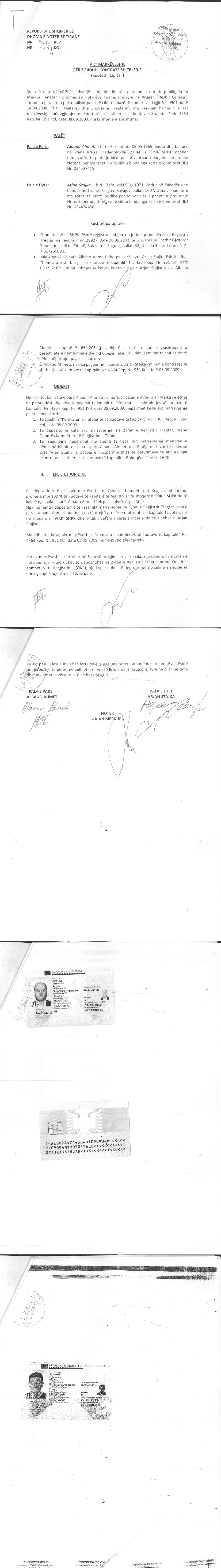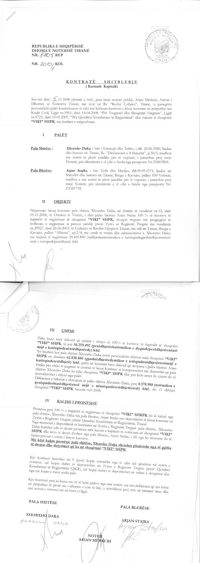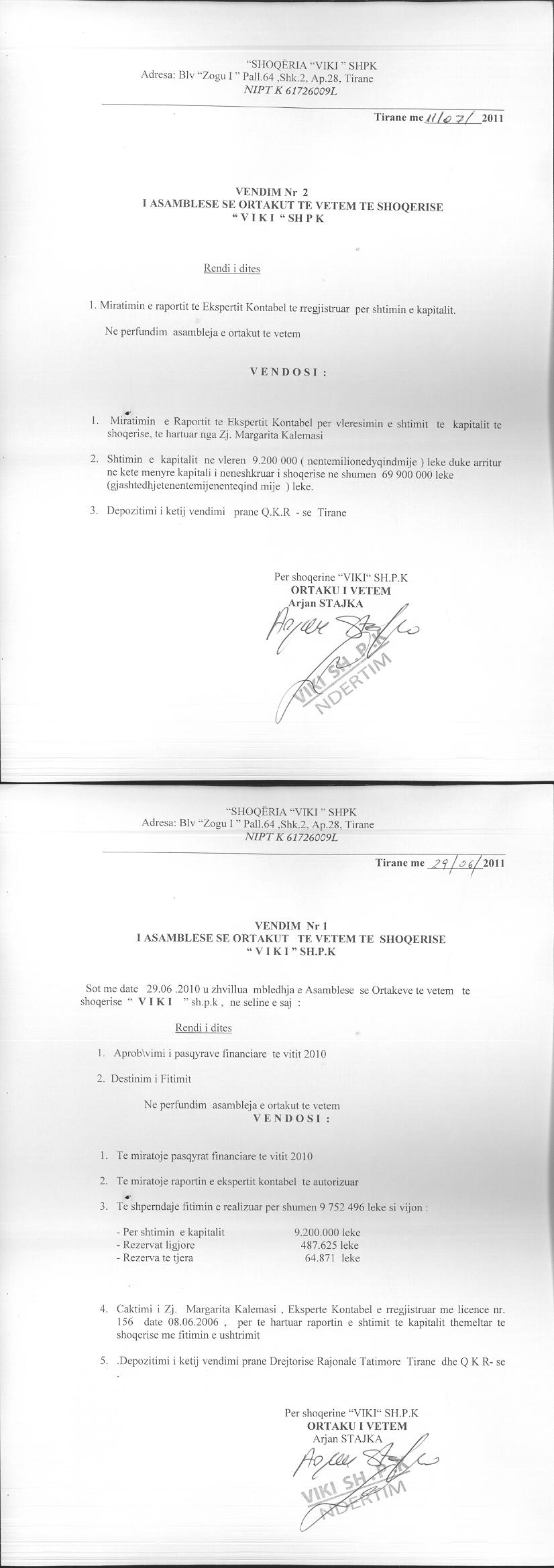 → Ekstrakt Historik i Regjistrit Tregtar date 05.07.2025 → Akt themelimi dhe Statuti i Shoqerise → Dokumente të Ndryshme → Kontratë Shitblerje Kuotash datë 01.09.2005 → Kontratë Shitblerje Kuotash Kapitali datë 29.12.2005 → Kontratë Shitje Kapitali datë 14.02.2006 → Vendim i Ortakut të Vetëm për Zmadhimin e Kapitalit datë 08.02.2007 → Raporti i Ekspertit Kontabël për Zmadhimin e Kapitalit → Vendim i Asamblesë së Ortakut të Vetëm për Zvogëlimin e Kapitalit datë 17.10.2008 → Kontratë Shitblerje Kuotash Kapitali datë 05.11.2008 → Kontratë Shitblerje Kuotash Kapitali datë 26.11.2008 → Akt Marrëveshje Nr. 3211 Rep., Nr. 721/3 Kol., datë 18.06.2009 → Kontratë Shitblerje Kuotash Kapitali datë 08.09.2009 → Vendim i Asamblesë së Ortakut të Vetëm për Zmadhimin e Kapitalit datë 18.08.2009 → Vendim i Asamblesë së Ortakut të Vetëm për Zmadhimin e Kapitalit datë 30.06.2010 → Akt Marrëveshje për Zgjidhjen e Kontratës së Shitblerjes të Kuotave të Kapitalit, 06.03.2011 → Vendim i Asamblesë së Ortakut të Vetëm për Zmadhimin e Kapitalit datë 29.06.2011 → Vendim Nr. 01, datë 04.06.2024 i Këshillit Kombëtar të Territorit për Miratimin e Lejes së Zhvillimit për Objektin: “Kompleks Turistik, Rezidencial dhe Shërbime (Nukli 1)”, me Vendndodhje në Jalë, Bashkia Himarë. |