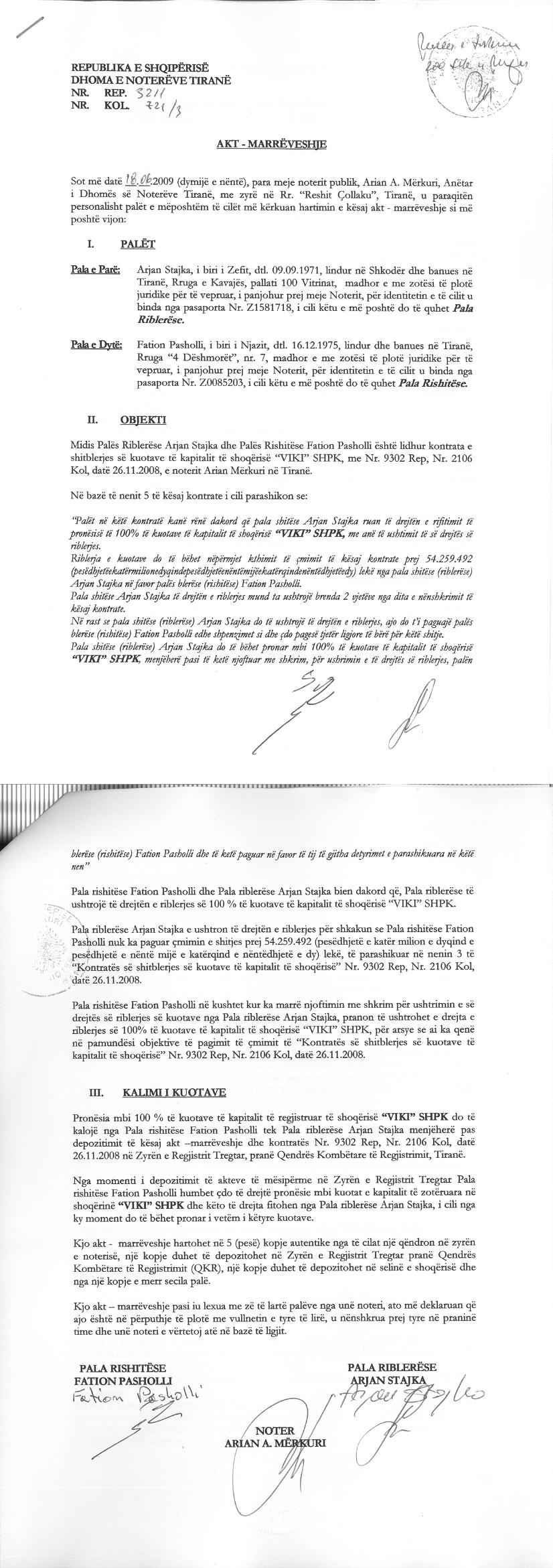 kuota/aksione te cilat zoterohen nga pala debitore:Shoqeria “Viki” shpk, NIPT