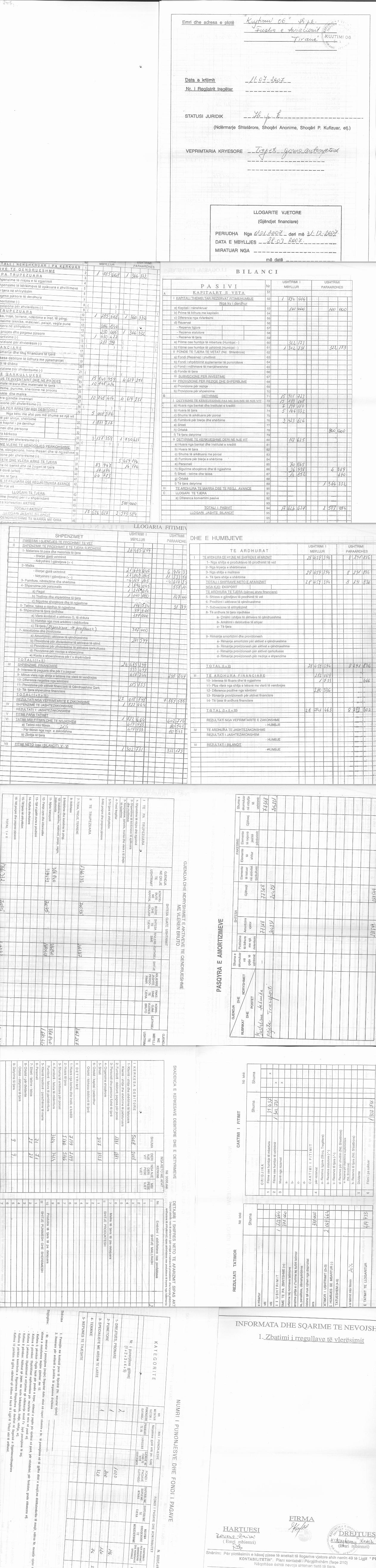 Xhiro Vjetore(Lekë) 2020:205 109 596,00 Xhiro Vjetore(Lekë) 2019:208 802 777,00 Xhiro Vjetore(Lekë) 2018:196 676 797,00 Xhiro Vjetore(Lekë) 2017:212 168 896,00 Xhiro Vjetore(Lekë) 2016:189 505 847,00 Xhiro Vjetore(Lekë) 2015:152 848 591,00 Xhiro Vjetore(Lekë) 2014: 124 294 279,00 Xhiro Vjetore(Lekë) 2013: 115 229 841,00 Xhiro Vjetore(Lekë) 2012: 88 674 092,00 Xhiro Vjetore(Lekë) 2011: 69 828 524,00 Xhiro Vjetore(Lekë) 2010: 70 317 834,00 Xhiro Vjetore(Lekë) 2008: 56 890 746,00 Xhiro Vjetore(Lekë) 2007: 28 459 394,00 |
