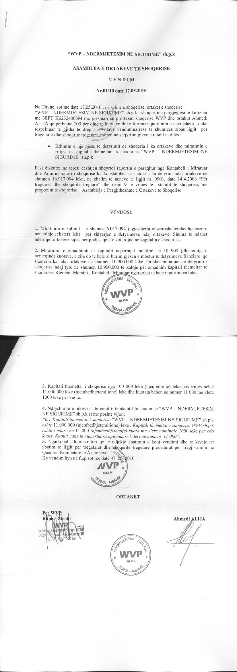 → Ekstrakt Historik i Regjistrit Tregtar date 03.09.2024 → Akt themelimi dhe Statuti i Shoqerise → Dokumente të Ndryshme → Të dhënat e Shoqërisë "WVP"-GmbH sipas Regjistrit Tregtar Austriak datë 31.07.2006 → Regjistri i Shoqërive Austriake, Pasqyrë e të dhënave të "WVP"-GmbH datë 25.08.2006 → Kontratë për Shitje Kuotash datë 17.12.2009 → Vendim i Asamblesë së Ortakëve, Zmadhim Kapitali datë 17.05.2010 → Çertifikatë e Kryerjes së Regjistrimeve për Shndërrimin e Formës Ligjore datë 04.05.2011 → Aplikim për Miratimin e Shndërrimit të Formës Ligjore datë 30.01.2012 → Kontratë për Shitje Aksionesh datë 30.06.2011 → Akt Vendim për Ndryshimin e Emrit të Aksionarit Alija Ahmedi në Ali Lena me Vendim të Ministrisë së Punëve të Brendshme, Maqedoni datë 03.08.2016 → Ekstrakt Historik i Regjistrit te Pronareve Perfitues date 03.09.2024 |