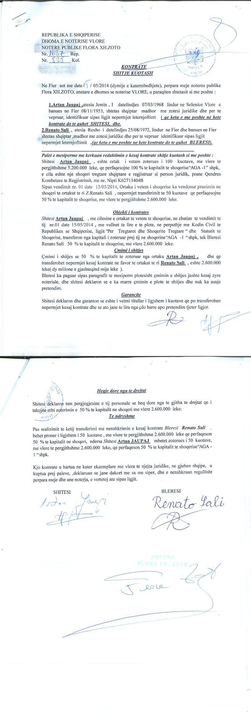 → Ekstrakt historik i regjistrit tregtar 06.07.2022 → Akti i themelimit → Vendim i asamblese se ortakeve per rritjen e kapitalit 26.06.2018 → Kontrate shitje kuotash 15.05.2014 → Vendim i asamblese se ortakeve per rritjen e kapitalit 25.06.2017 → Vendim i asamblese se ortakeve per rritjen e kapitalit 21.06.2009 → Vendim i asamblese se ortakeve per zmadhimin e kapitalit 15.06.2015 → Urdher per Vendosjen e Sekuestros date 17.11.2021 → Urdher per Heqjen e Sekuestros date 06.12.2021 → Ekstrakt Historik i Regjistrit Tregtar date 03.05.2025 |