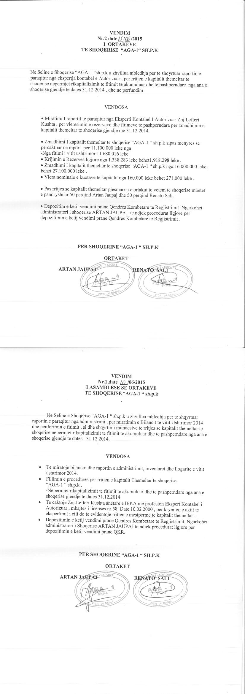 | Akte. Tjetërsim Kapitali: |