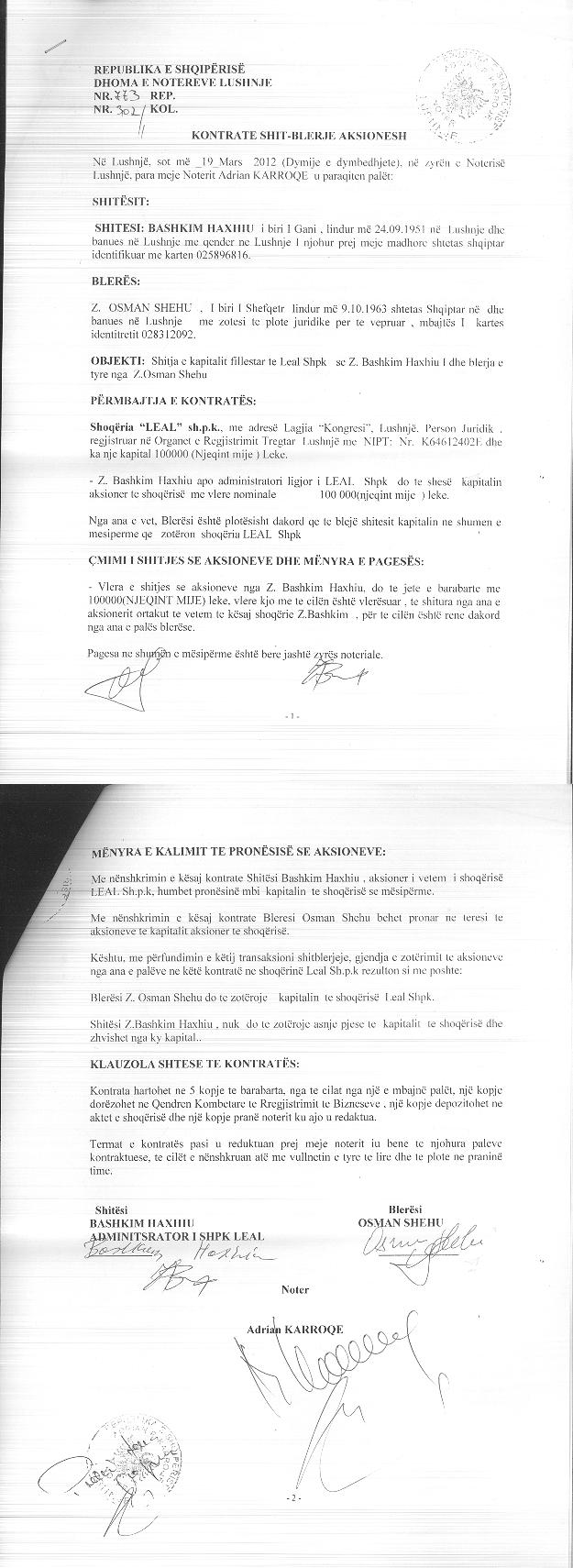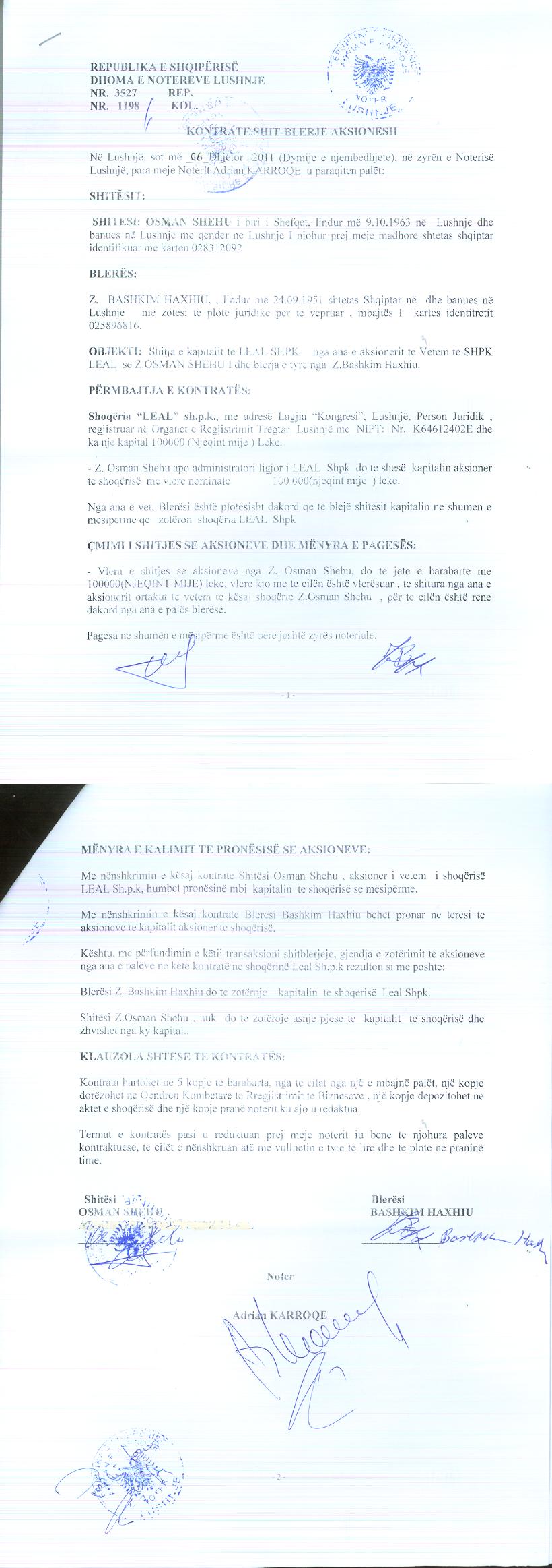 → Ekstrakt historik i regjistrit tregtar 02.04.2021 → Statuti i shoqerise → Kontrate shit-blerje aksionesh 19.03.2012 → Kontrate shit-blerje aksionesh 06.12.2011 |
