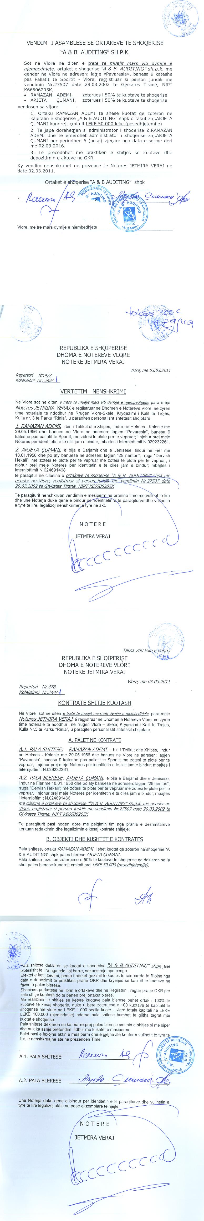 | Emërtime të tjera Tregtare: | A&B AUDITING |
