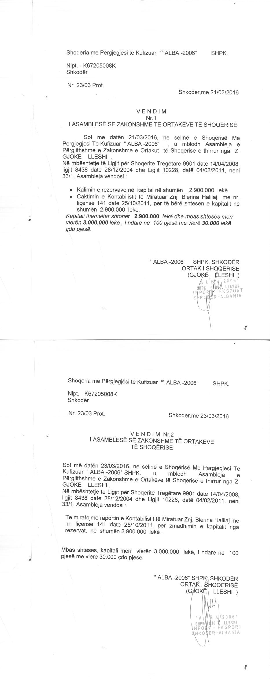 | Akte. Tjetërsim Kapitali: |