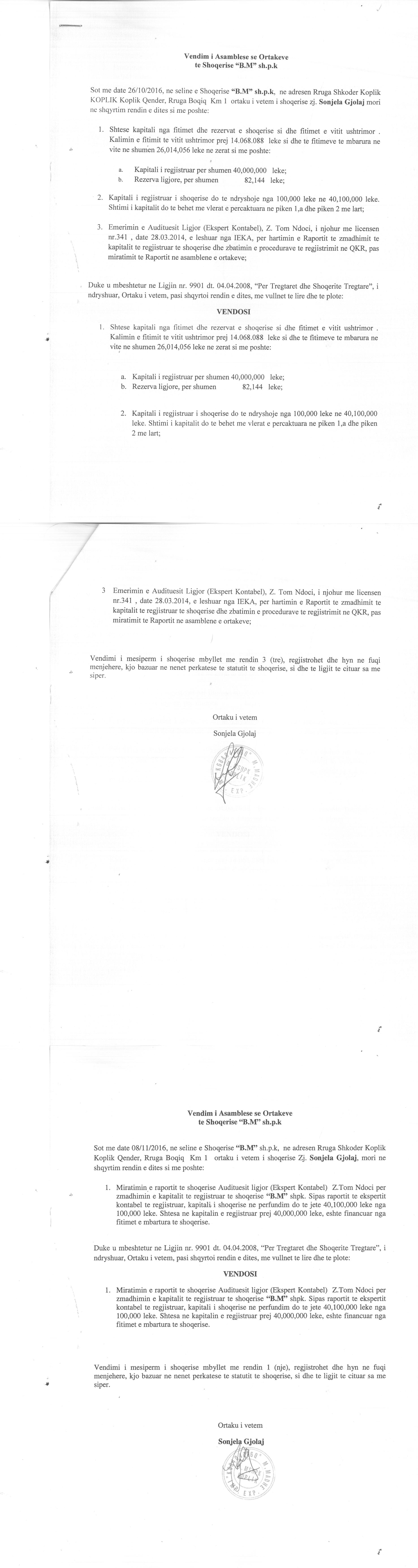 | Akte. Tjetërsim Kapitali: |