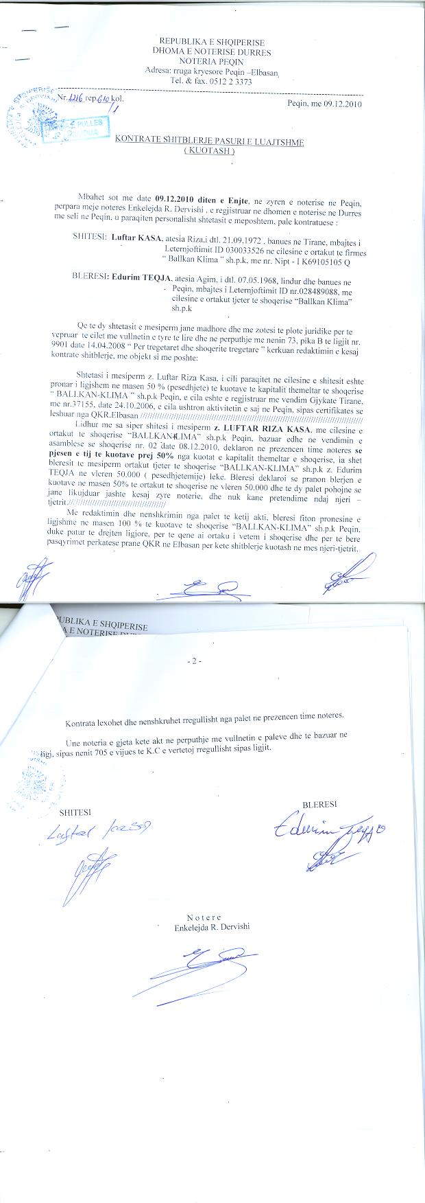 → Ekstrakt Historik i Regjistrit Tregtar date 08.05.2024 → Akt themelimi dhe Statuti i Shoqerise → Kontratë Shitblerje Pasuri e Luajtshme datë 09.12.2010 → Vendim i Ortakut të Vetëm, Likuidimi i Shoqërisë datë 26.03.2024 |