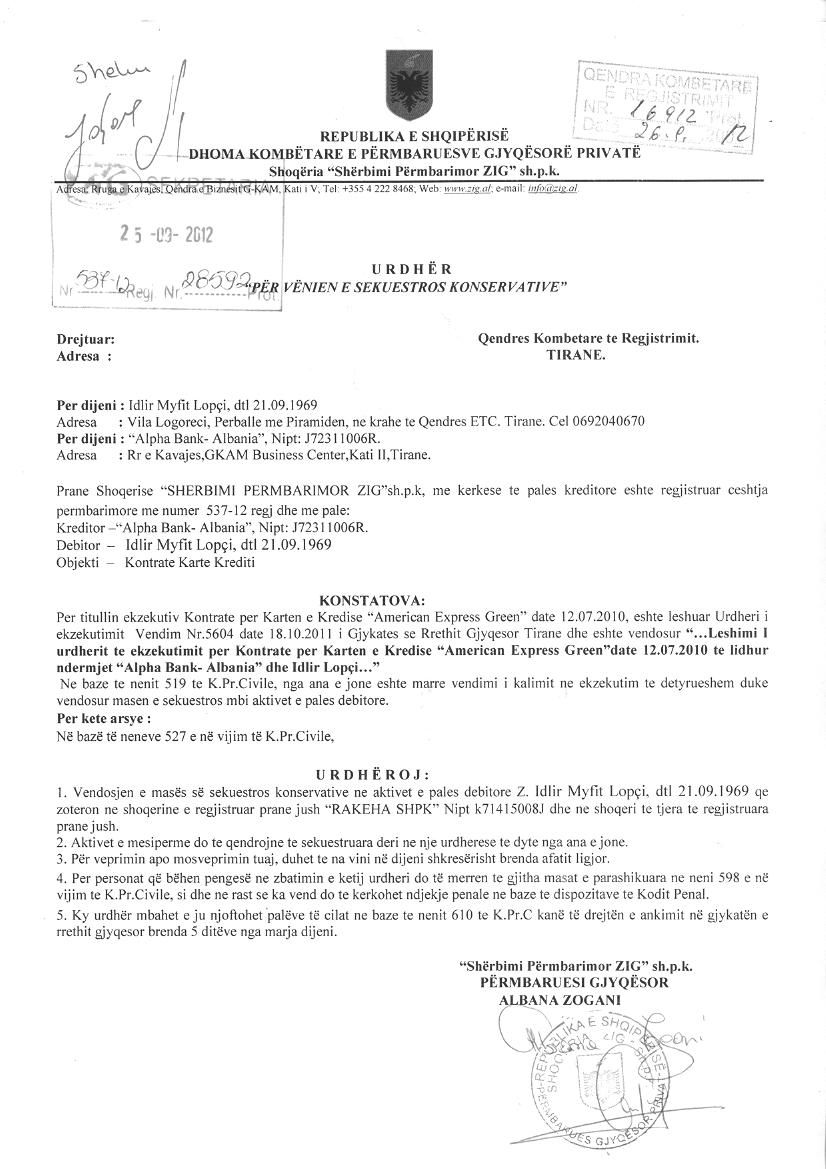 | Administrator: | Idlir Lopçi (Likuidator) |