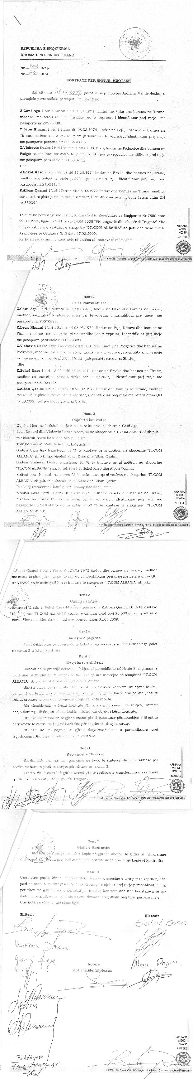→ Ekstrakt Historik i Regjistrit Tregtar date 27.09.2024 → Akt themelimi dhe Statuti i Shoqerise → Dokumente të Ndryshme → Kontratë Shitje Kuotash datë 25.10.2006 → Kontratë për Shitje Kuotash datë 07.07.2007 → Kontratë për Shitje Kuotash datë 28.02.2009 |