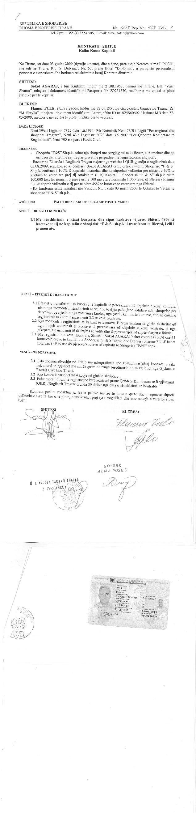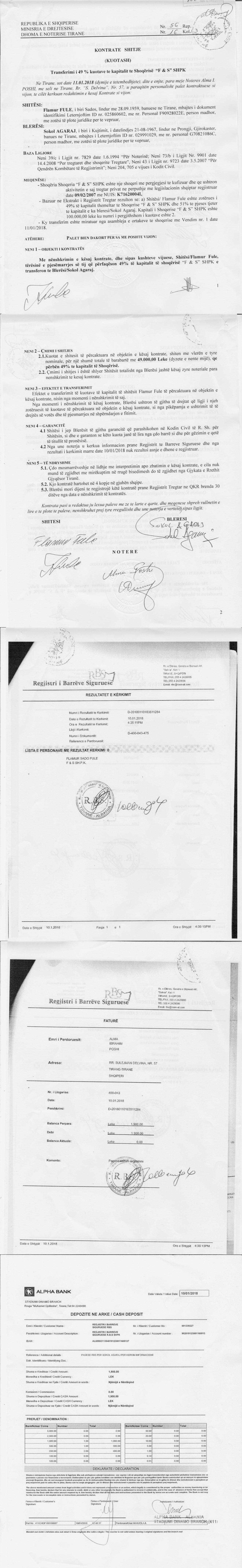 → Ekstrakti Historik i Regjistrit Tregtar date 19.05.2023 → Akt themelimi dhe Statuti i Shoqerise → Kontrate Shitje Kuotash date 03.08.2009 → Kontrate Shitje Kuotash date 11.01.2018 |