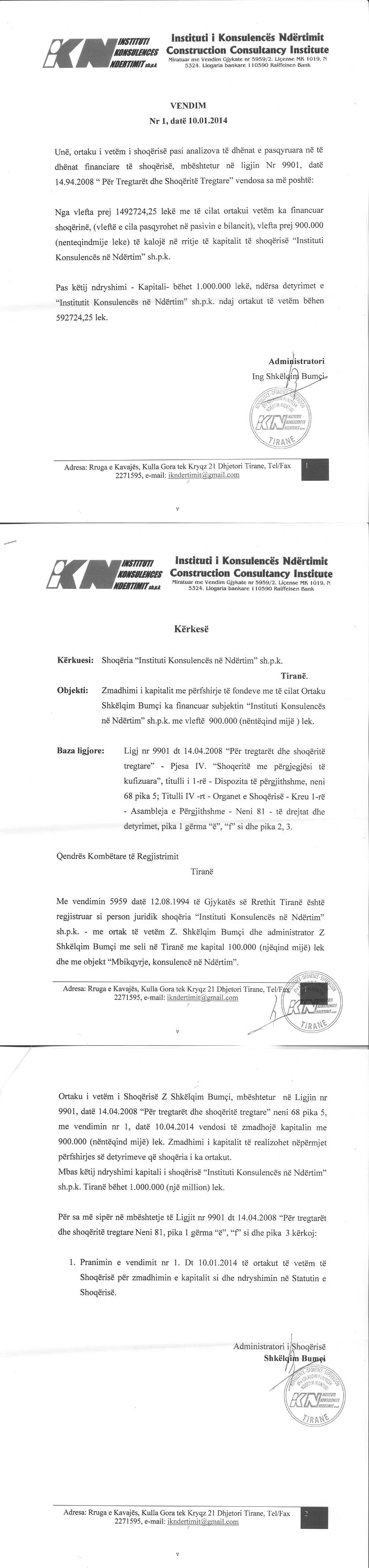 | Emërtime të tjera Tregtare: | INSTITUTI I KONSULENCES NE NDERTIM "IKN" |