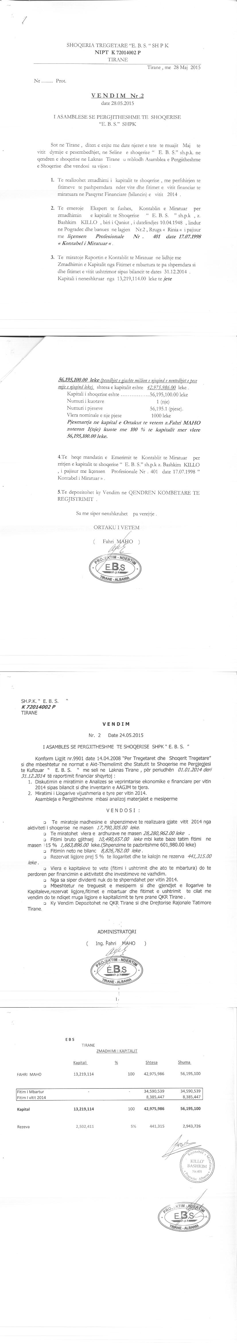 → Ekstrakt historik i regjistrit tregtar 17.11.2021 → Statuti i shoqerise → Kontrate dhurimi kuotash 02.12.2008 → Vendimi per zmadhimin e kapitalit 28.05.2015 |