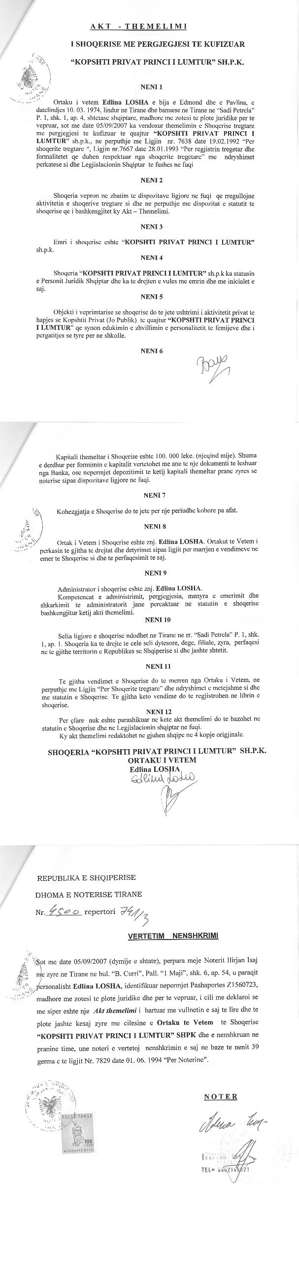 → Ekstrakti Historik i Regjistrit Tregtar date 08.07.2022 → Akt themelimi i Shoqerise |