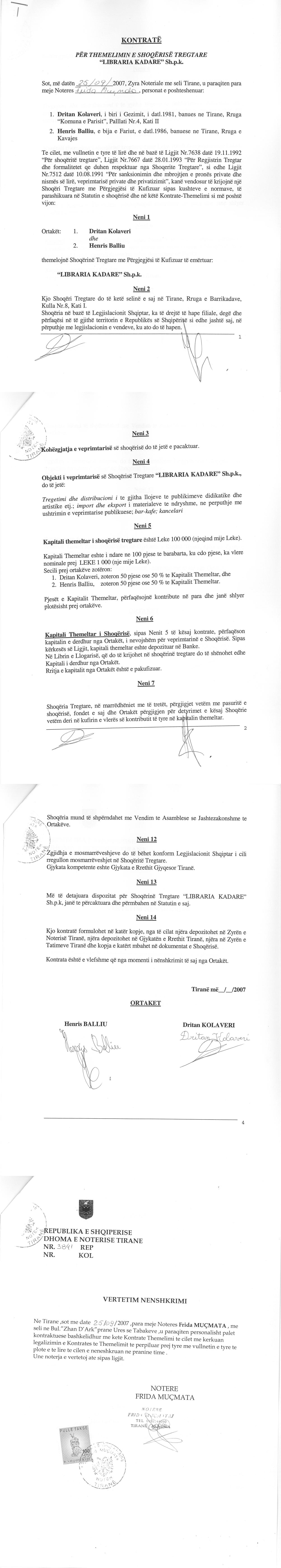 → Ektrakti Historik i Regjistrit Tregtar date 14.07.2022 → Akt themelimi i Shoqerise |