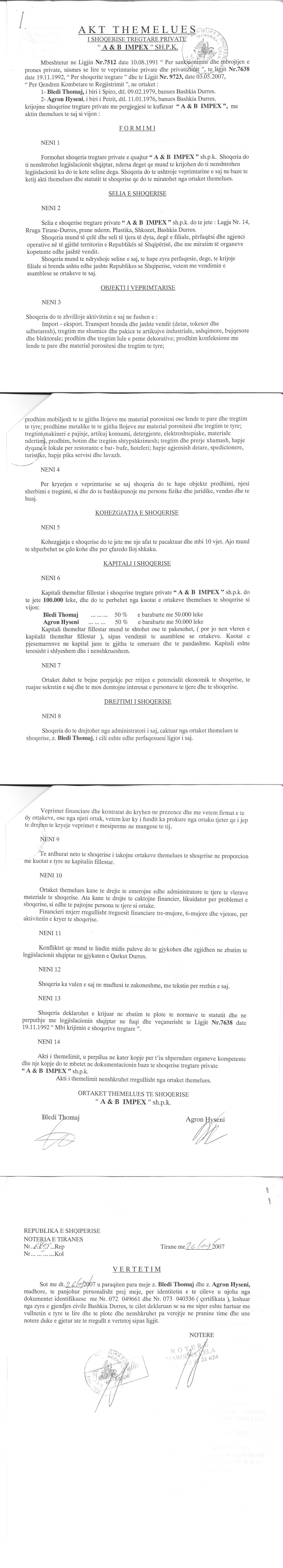 → Ekstrakt Historik i Regjistrit Tregtar date 23.08.2023 → Akt themelimi i Shoqerise → Marrëveshje transferimi e Pjesëve të Kapitalit datë 01.10.2018 |