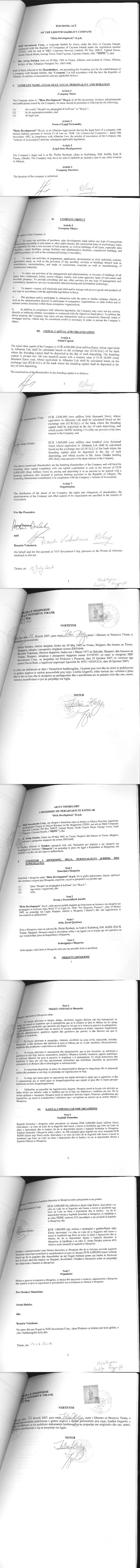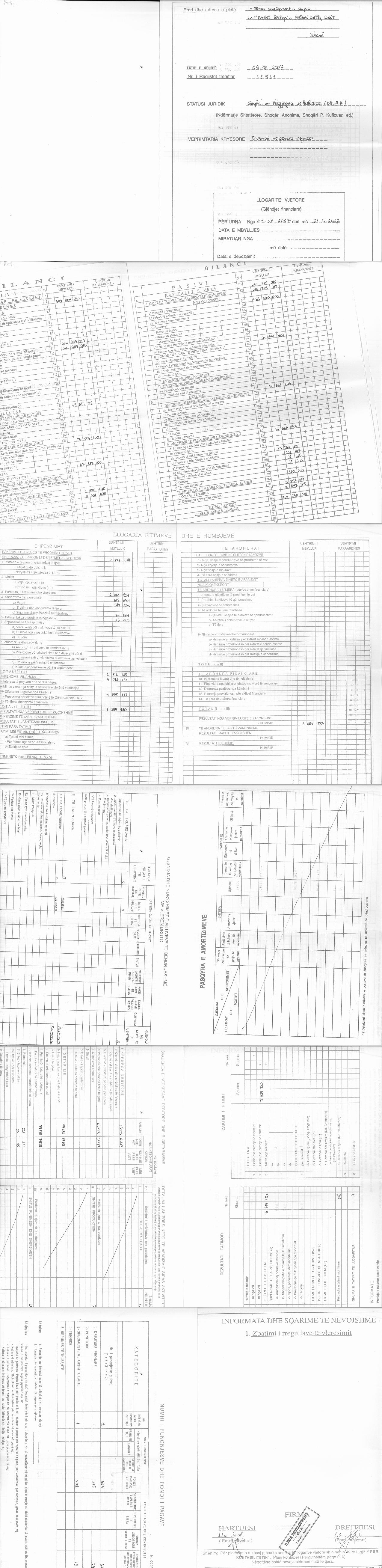 | Shënime: | Kapitali i shoqerise eshte i shprehur ne euro [ne shumen 4.000.000 (katër milion) euro], por eshte konvertuar ne leke sipas kursit zyrtar ditor te kembimit në ditën e depozitimit dhe të bankës, prej 123.41 ALL/EUR. |