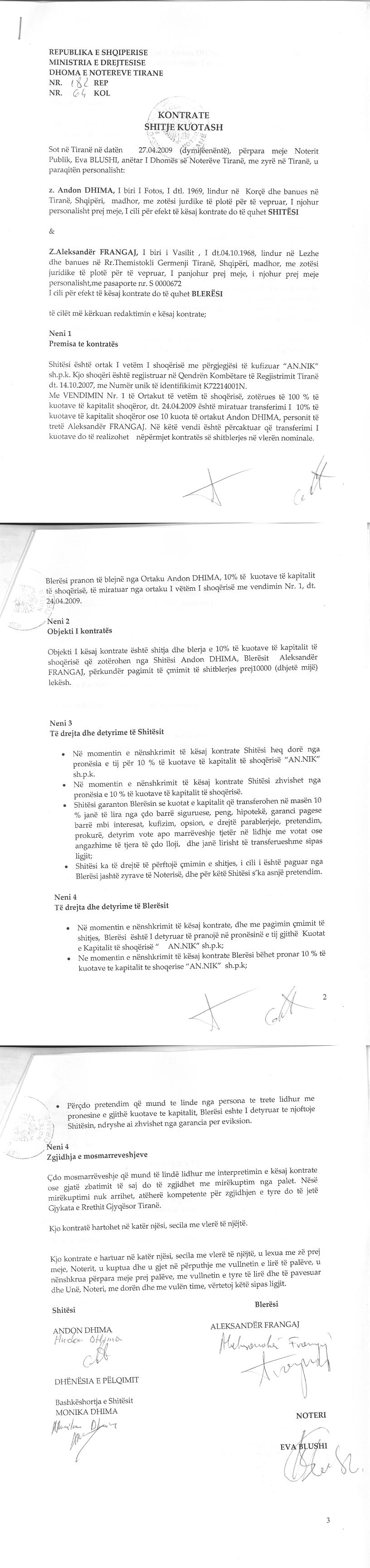 → Ekstrakt Historik i Regjistrit Tregtar date 21.03.2023 → Akt themelimi i Shoqerise → Kontratë Shitje Kuote datë 27.04.2009 → Ekstrakt Historik i Regjistrit Tregtar date 15.03.2025 → Vendim i Asamblesë së Ortakëve për Likuidimin e Shoqërisë datë 05.03.2025 |