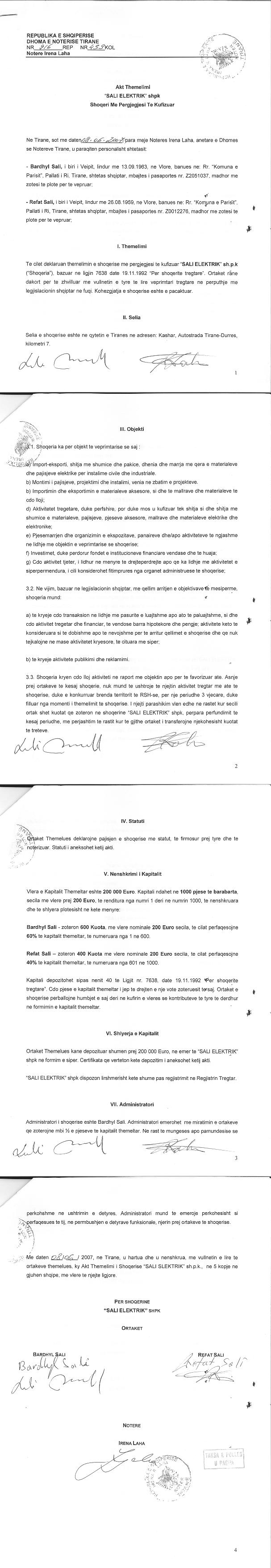 Statuti fillestar i shoqerise dhe dokumenta te ndryshme