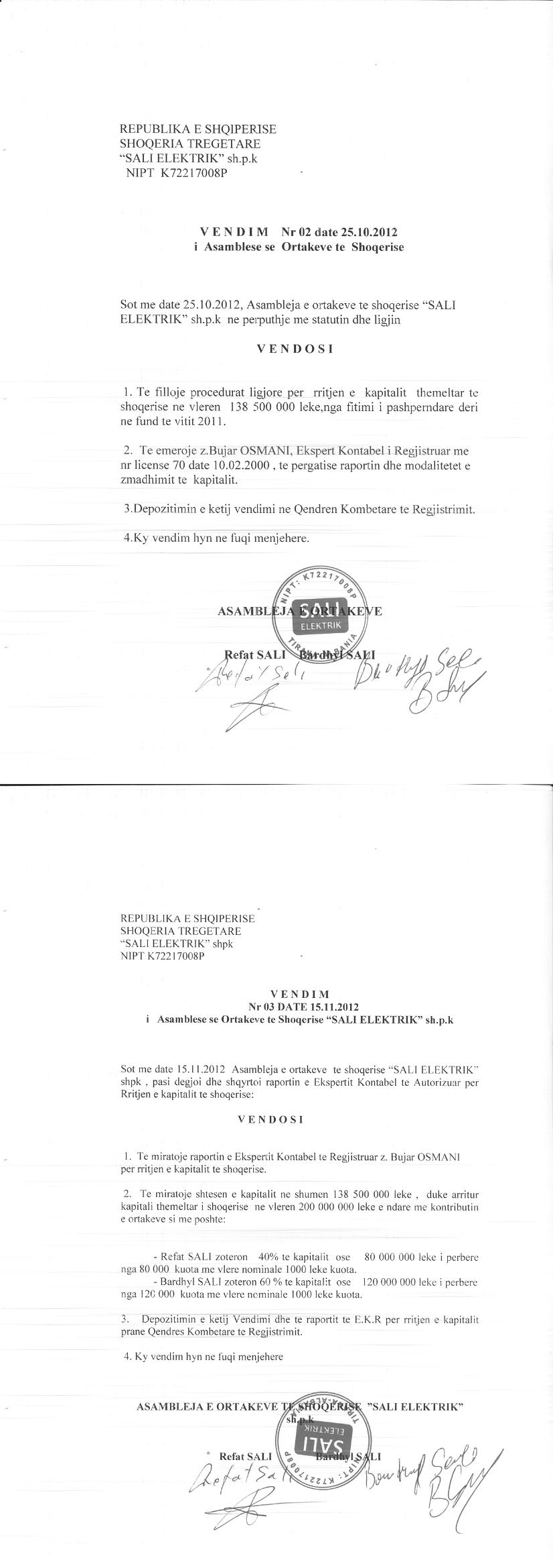 Vendim i Asamblese se ortakeve date 15.11.2012
