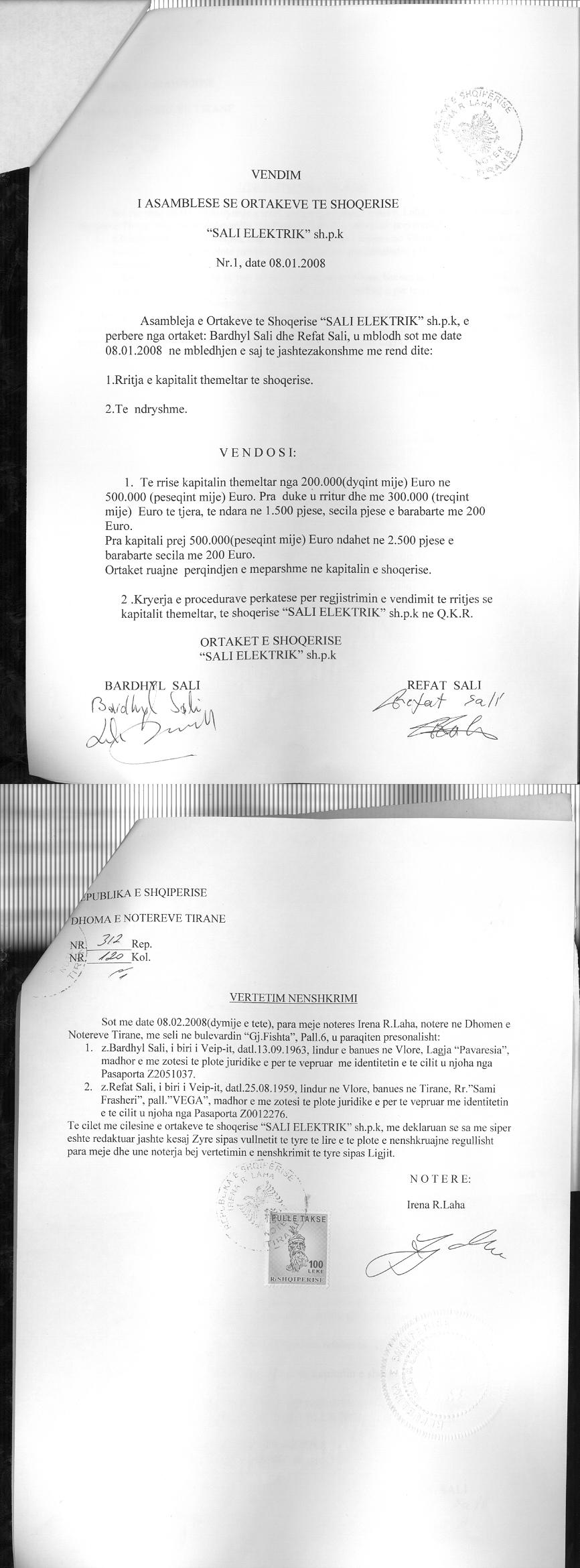 Vendim i Asamblese se ortakeve date 08.01.2008