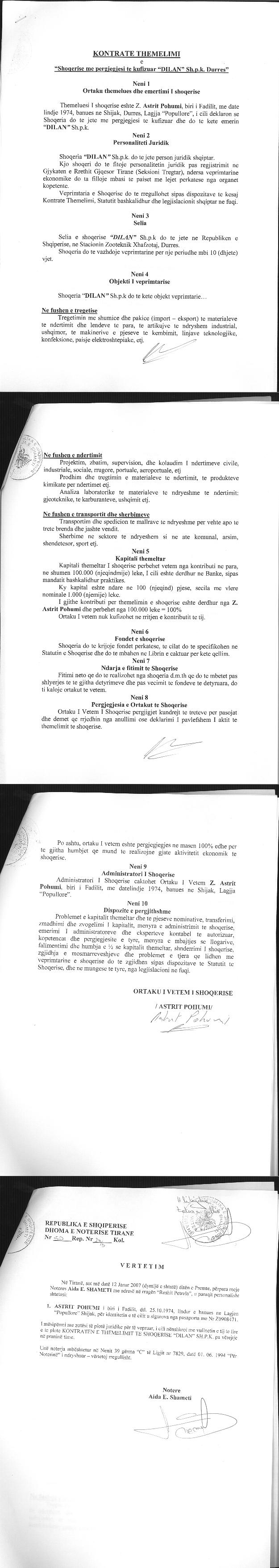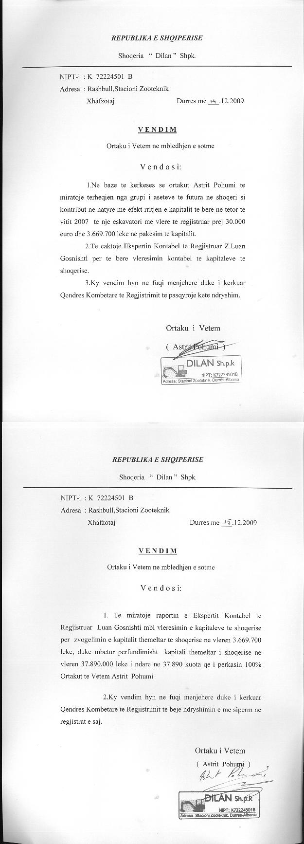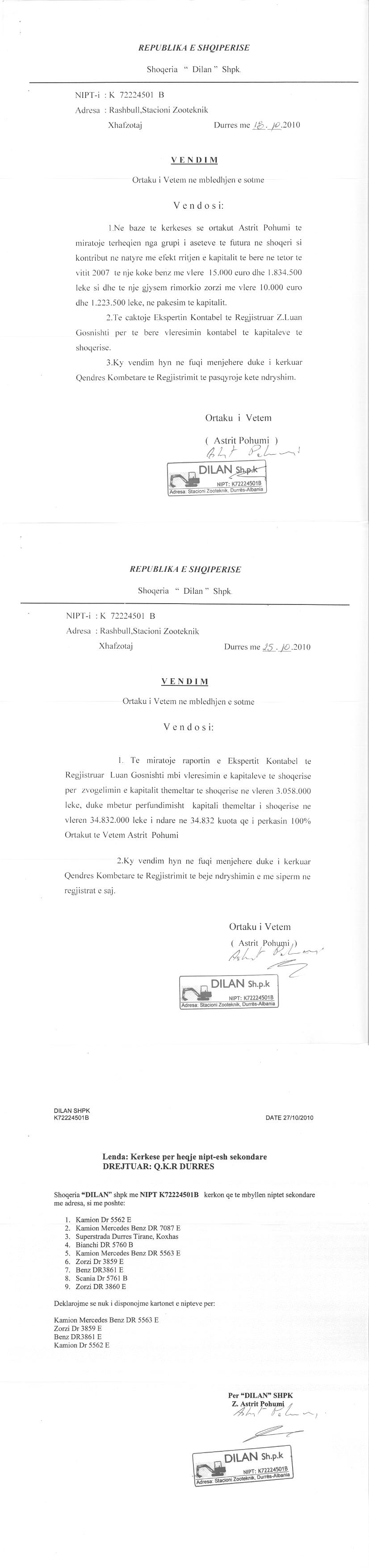 → Ekstrakti Historik i Regjistrit Tregtar date 31.07.2024 → Akti i themelimit te Shoqerise → Vendim i ortakut te vetem date 10.01.2008 → Vendim i ortakut te vetem date 15.12.2009 → Vendim i ortakut te vetem date 25.10.2010 |