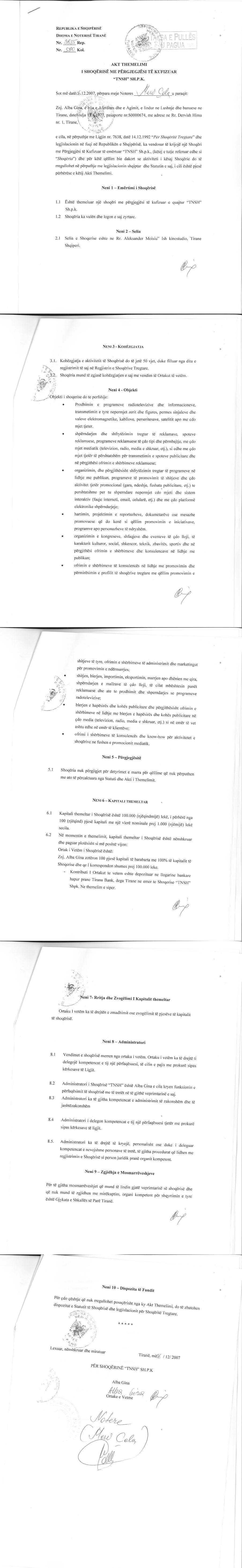 | Objekti i Veprimtarisë: | Prodhim dhe transmetim te programeve radio televizive. |