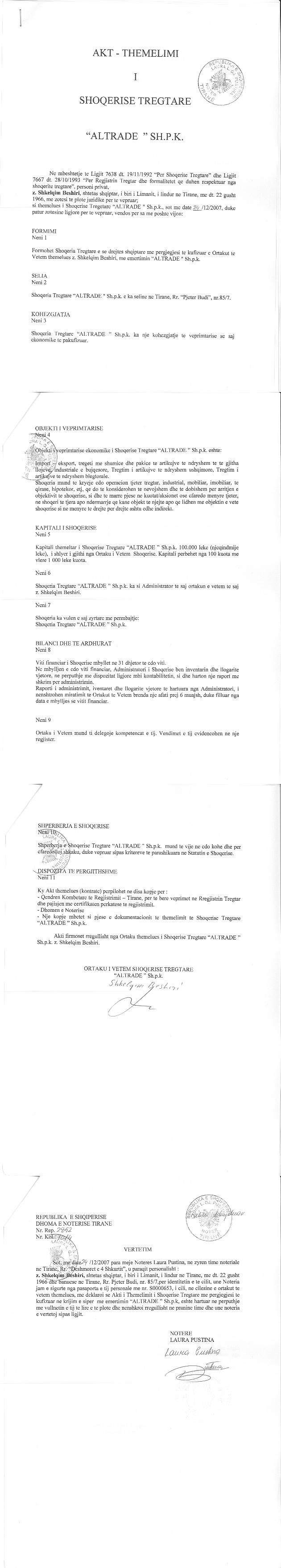 → Ekstrakt Historik i Regjistrit Tregtar date 09.07.2024 → Akt themelimi i Shoqerise |