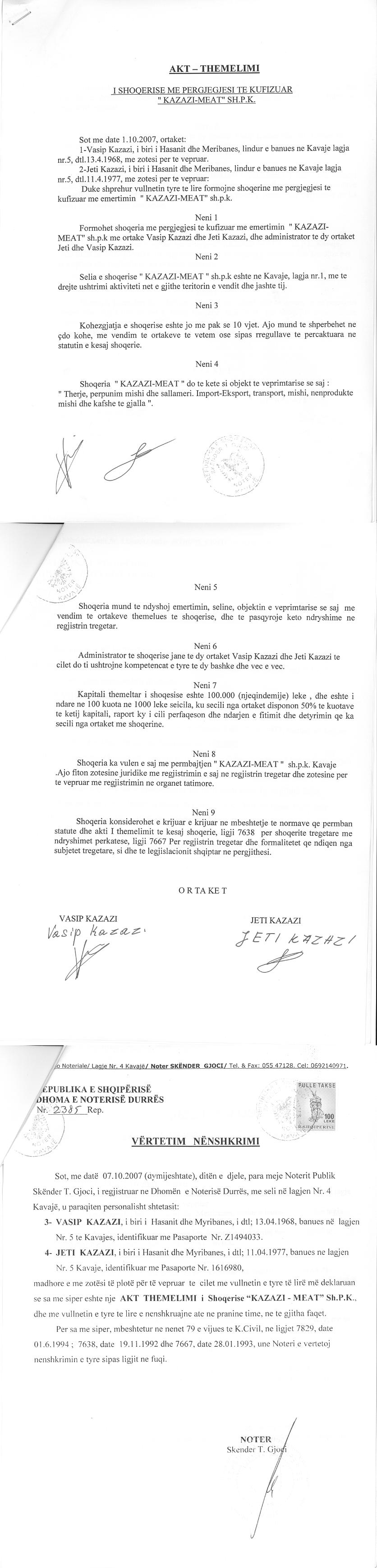 | Objekti i Veprimtarisë: | Therje,perpunim mishi, sallameri,import-eksport, agro biznes, etj. |