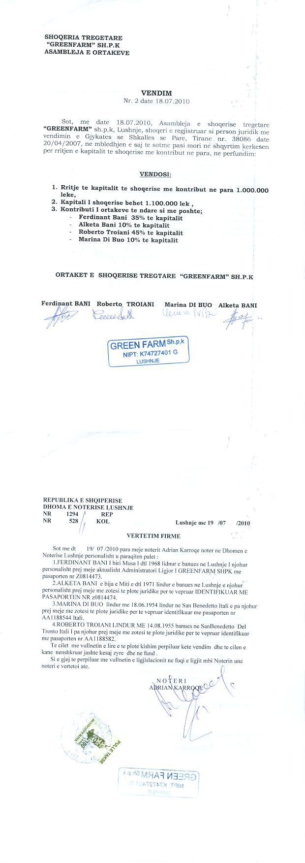 → Ekstrakt historik i regjistrit tregtar 23.07.2021 → Akti i themelimit → Kontrate pengu mbi kuotat e pjesemarrjes ne shoqeri 28.12.2015 → Vendimi i asamblese per rritjen e kapitalit 18.07.2010 → Vendimi i asamblese se ortakeve 06.08.2014 |