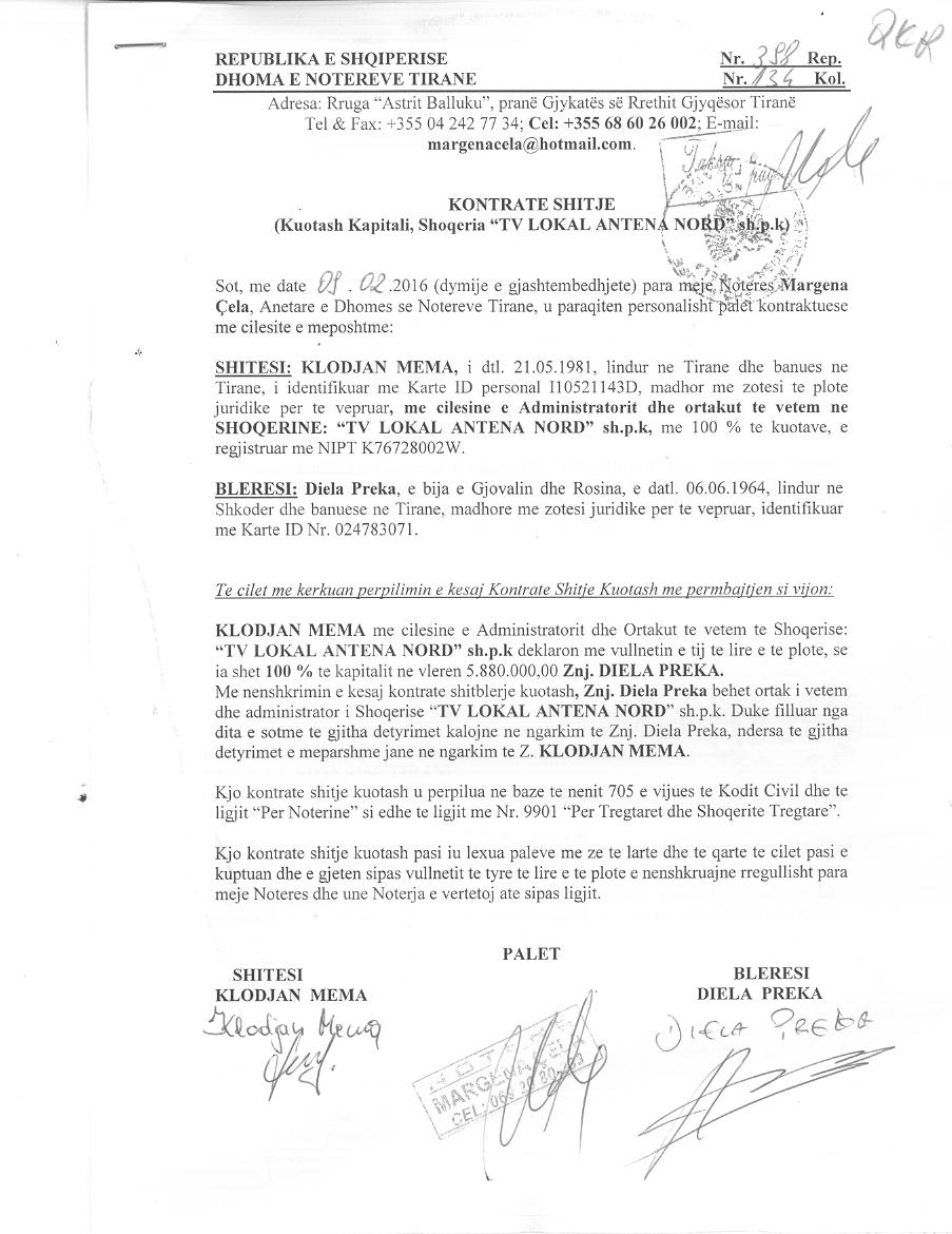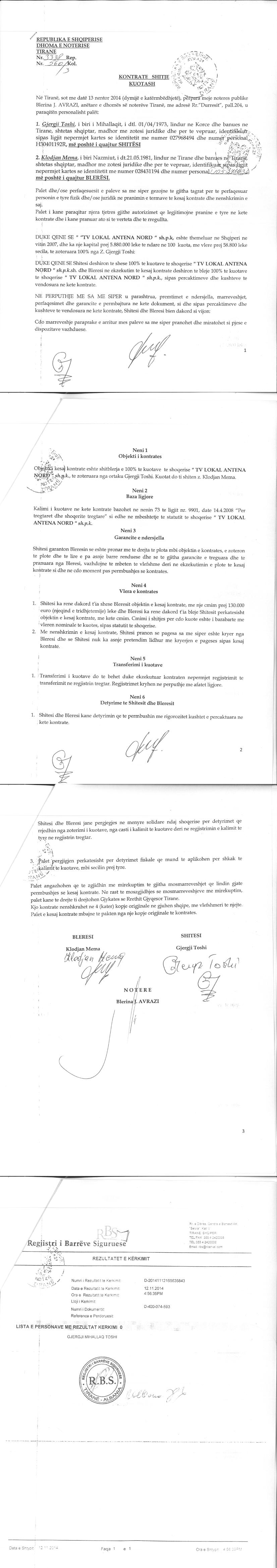 → Ekstrakti Historik i Regjistrit Tregtar date 02.08.2022 → Akt themelimi dhe Statuti i Shoqerise → Kontrate Shitje Kuotash date 25.02.2008 → Kontrate Shitje Kuotash date 13.11.2014 → Kontrate Shitje Kuotash date 09.02.2016 |