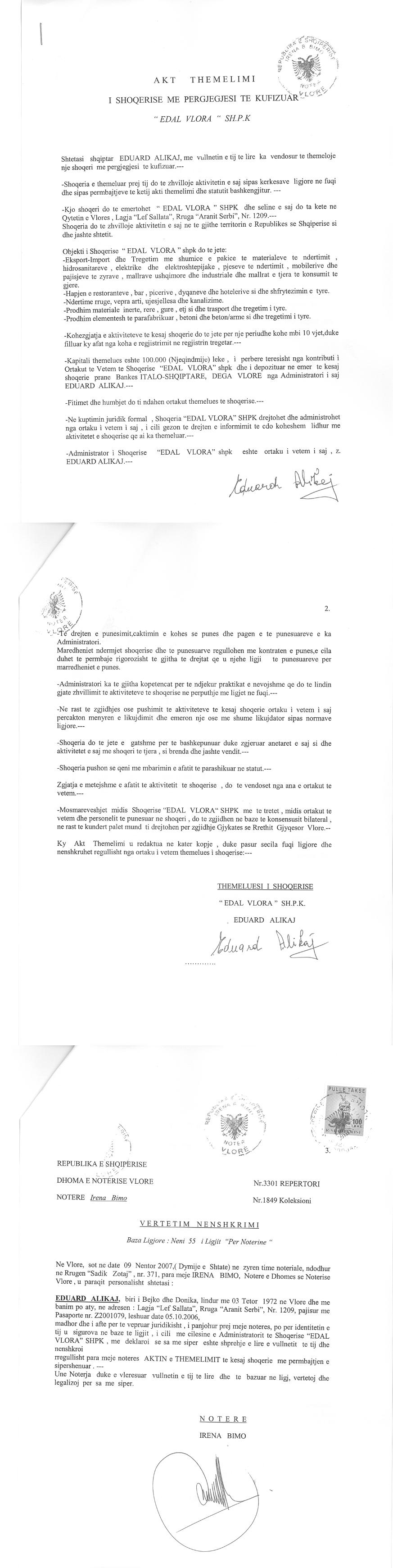 → Ekstrakti Historik i Regjistrit Tregtar date 28.01.2022 → Akti i themelimit te Shoqerise |