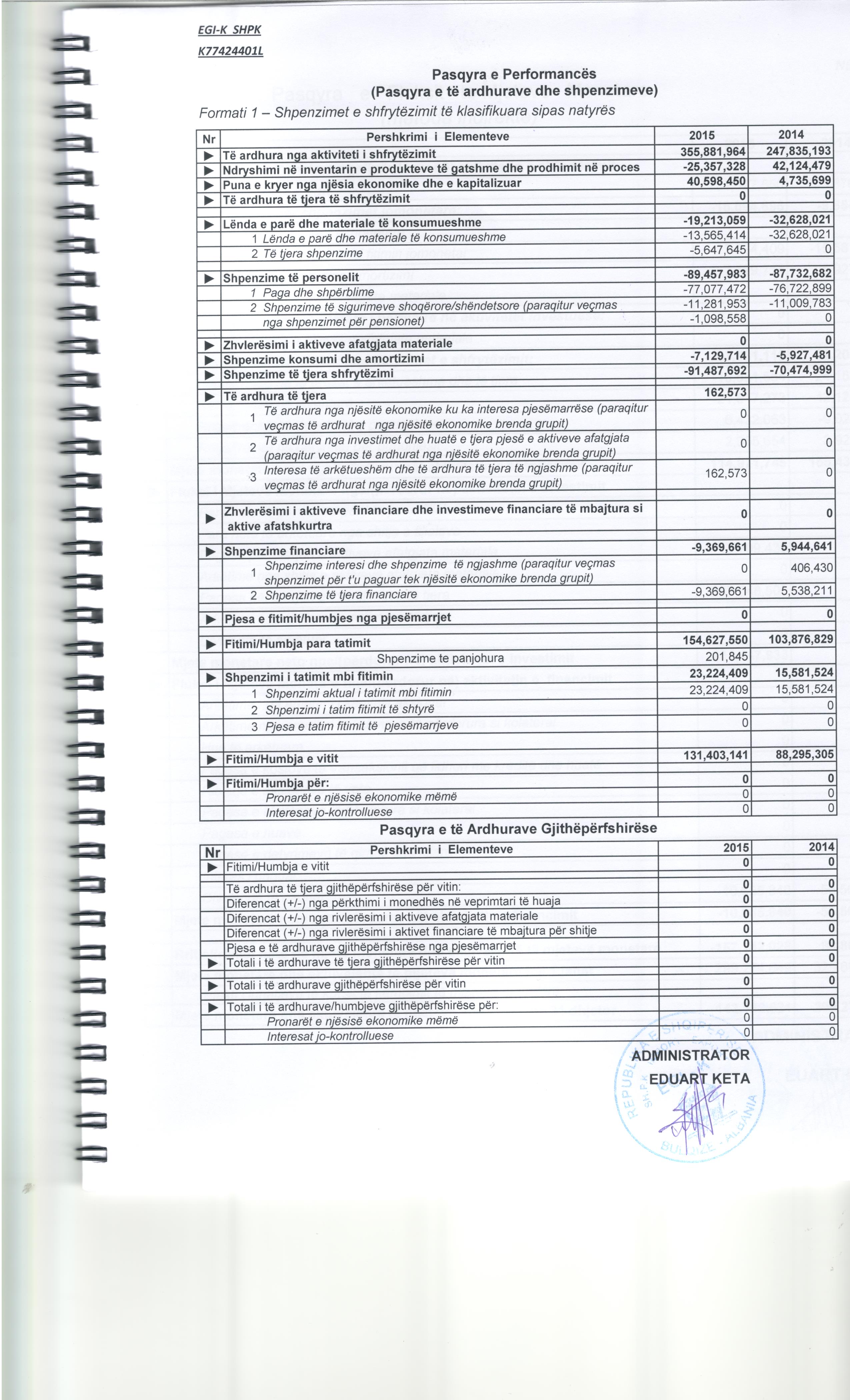 Xhiro Vjetore(Lekë) 2022:627 640 555,00 Xhiro Vjetore(Lekë) 2021:422 245 260,00 Xhiro Vjetore(Lekë) 2020:59 703 247,00 Xhiro Vjetore(Lekë) 2019:48 558 515,00 Xhiro Vjetore(Lekë) 2018:438 489 067,00 Xhiro Vjetore(Lekë) 2017:631 381 163,00 Xhiro Vjetore(Lekë) 2016:466 301 448,00 Xhiro Vjetore(Lekë) 2015:396 480 414,00 Xhiro Vjetore(Lekë) 2014: 252 570 892,00 Xhiro Vjetore(Lekë) 2013: 588 552 095,00 Xhiro Vjetore(Lekë) 2012: 278 382 458,00 |