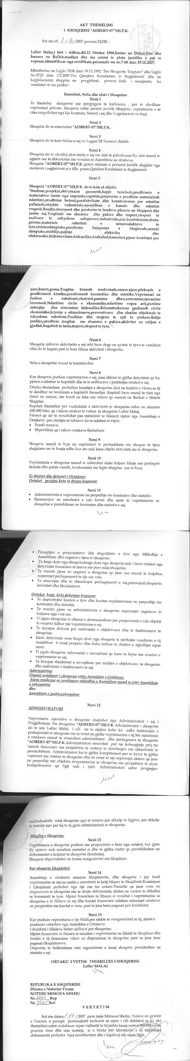 → Ekstrakt Historik i Regjistrit Tregtar date 28.02.2023 → Akt themelimi i Shoqerise |