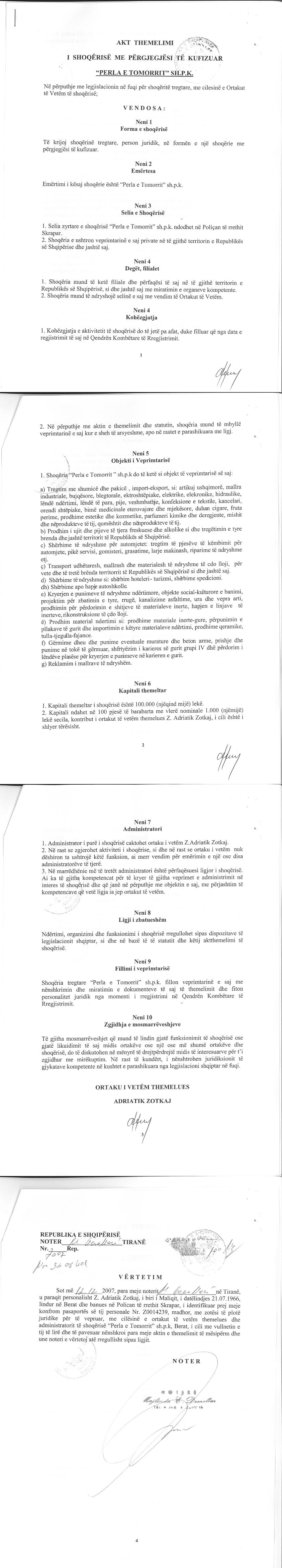 → Ekstrakti Historik i Regjistrit Tregtar date 17.05.2023 → Akt themelimi i Shoqerise → Kontrate Shitje Kuotash date 04.11.2008 → Kontrate Shitje Kuotash date 25.03.2009 → Kontrate Shitje Kuotash date 16.05.2009 → Kontrate Shitje Kuotash date 20.07.2009 → Kontrate Shitje Kuotash date 29.09.2009 → Kontrate Shitje Kuotash date 24.12.2009 → Kontrate Shitje Kuotash date 28.04.2011 → Kontrate Shitje Kuotash date 17.02.2014 → Kontrate Shitje Kuotash date 11.05.2022 → Kontrate Shitje Kuotash date 10.03.2022 → Vendim i Asamblese se Ortakeve, Zmadhim Kapitali date 07.05.2022 → Kontrate Shitje Kuotash date 08.06.2022 → Kontrate Dhurimi Kuotash date 06.10.2022 → Ekstrakti Historik i Regjistrit Tregtar date 04.06.2024 |