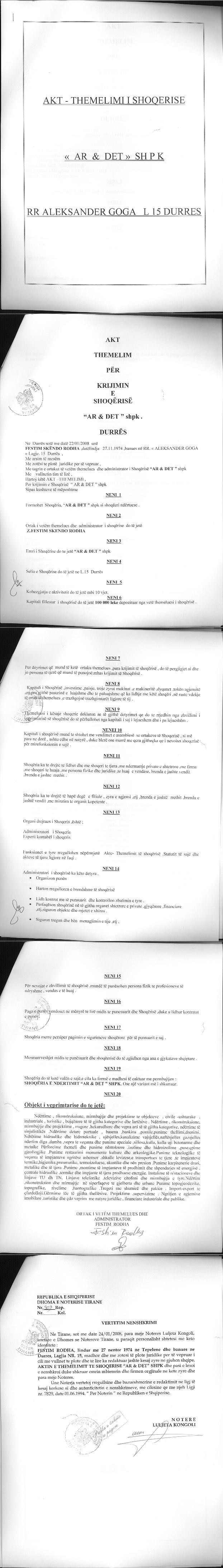 → Ekstrakt Historik i Regjistrit Tregtar date 05.06.2024 → Akt themelimi i Shoqerise |