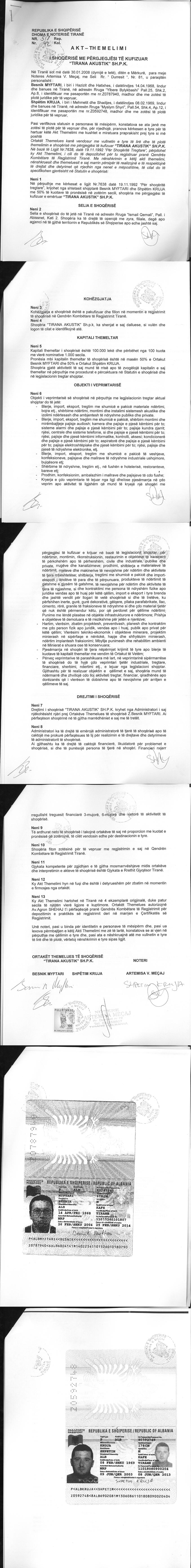 → Ekstrakti Historik i Regjistrit Tregtar date 20.10.2021 → Akti i themelimit te Shoqerise → Kontrata e Shit-Blerjes se Kuotave date 26.01.2017 → Kontrata e Dhurimit te Kuotave date 06.05.2019 → Kontrata e Shit-Blerjes se Kuotave date 07.11.2019 |