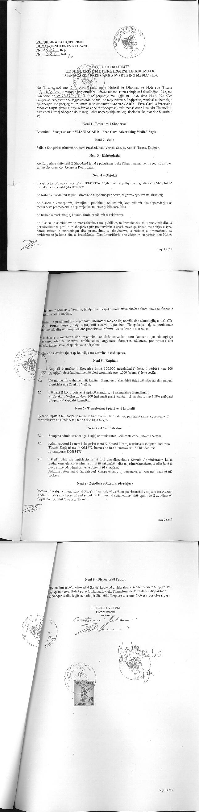 | Akte. Tjetërsim Kapitali: |
