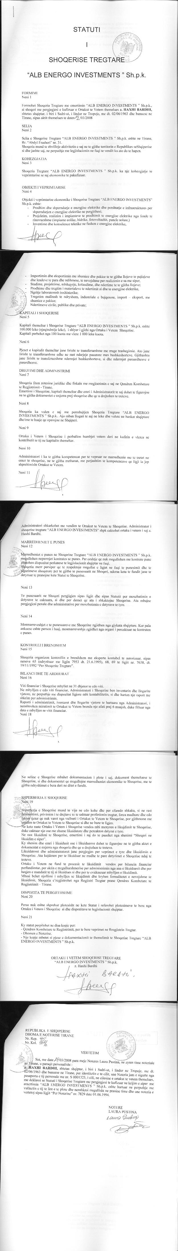 Haxhi Bardhi zoteron ne shoqerine Alb Energo Investments me NUIS (NIPT)