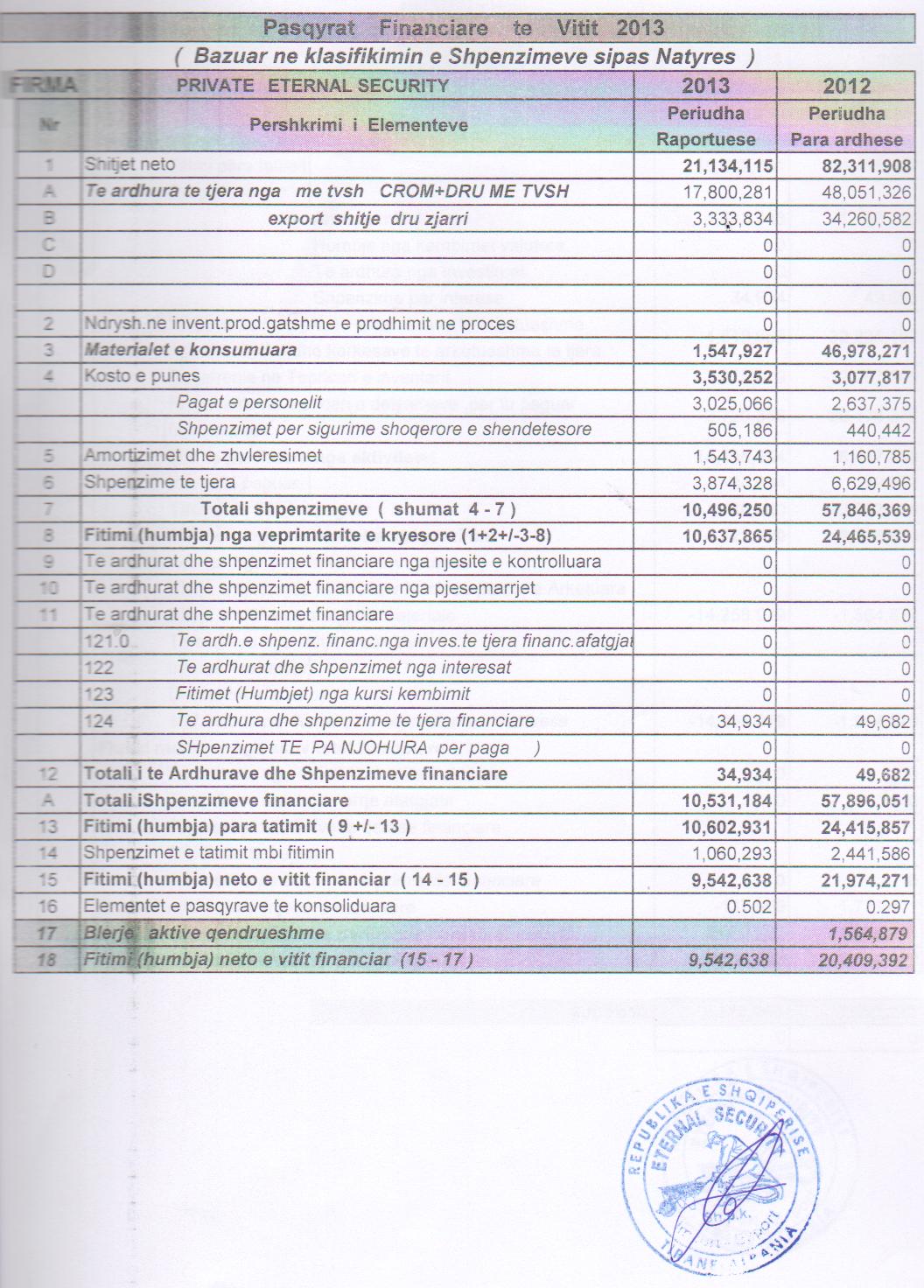 12 224 282,00 Fitimi para Tatimit(Lekë) 2019: 6 833 856,00 Fitimi para Tatimit(Lekë) 2018: -20 170 626,00 Fitimi para Tatimit(Lekë) 2017: 13 918 602,00 Fitimi para Tatimit(Lekë) 2016: 9 617 564,00 Fitimi para Tatimit(Lekë) 2015: 1 967 630,00 Fitimi para Tatimit(Lekë) 2014: 1 352 416,00 Fitimi para Tatimit(Lekë) 2013: 10 602 931,00 Fitimi para Tatimit(Lekë) 2012: 24 415 857,00 |