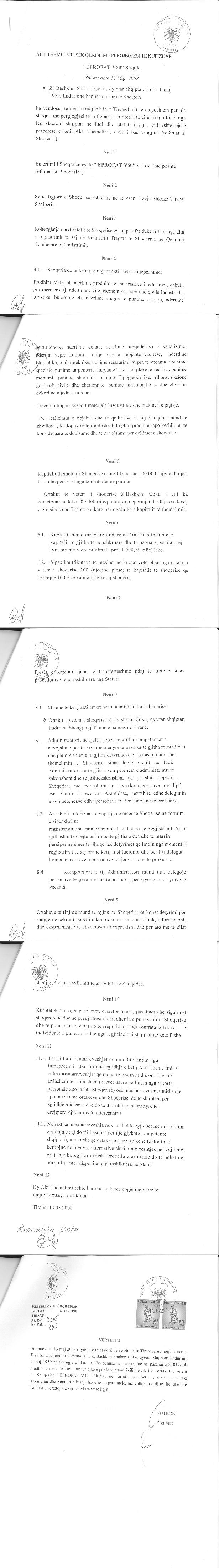 → Ekstrakti Historik i Regjistrit Tregtar date 28.10.2021 → Akti i themelimit te Shoqerise → Kontrate e Dhurimit te Kuotave date 17.06.2017 → Vendim i Asamblese se Pergjithshme per rritjen e kapitalit date 03.07.2017 |