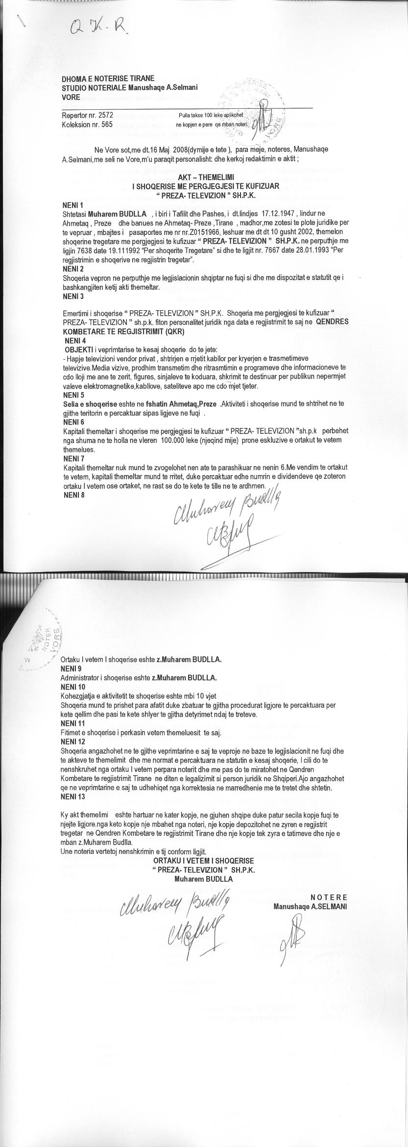 | Emërtime të tjera Tregtare: | PREZA-TELEVIZION |